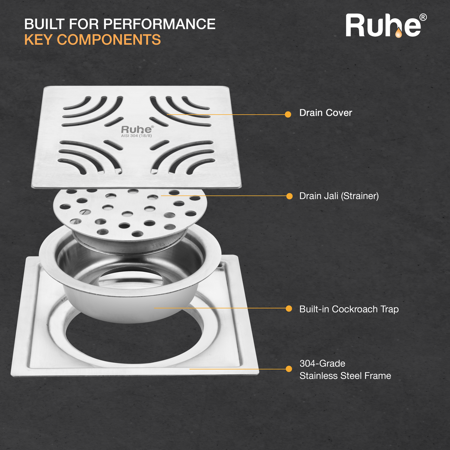 Emerald Square Flat Cut Floor Drain - Silver / 5 Inches / Without Hole is backordered and will ship as soon as it is back in stock.