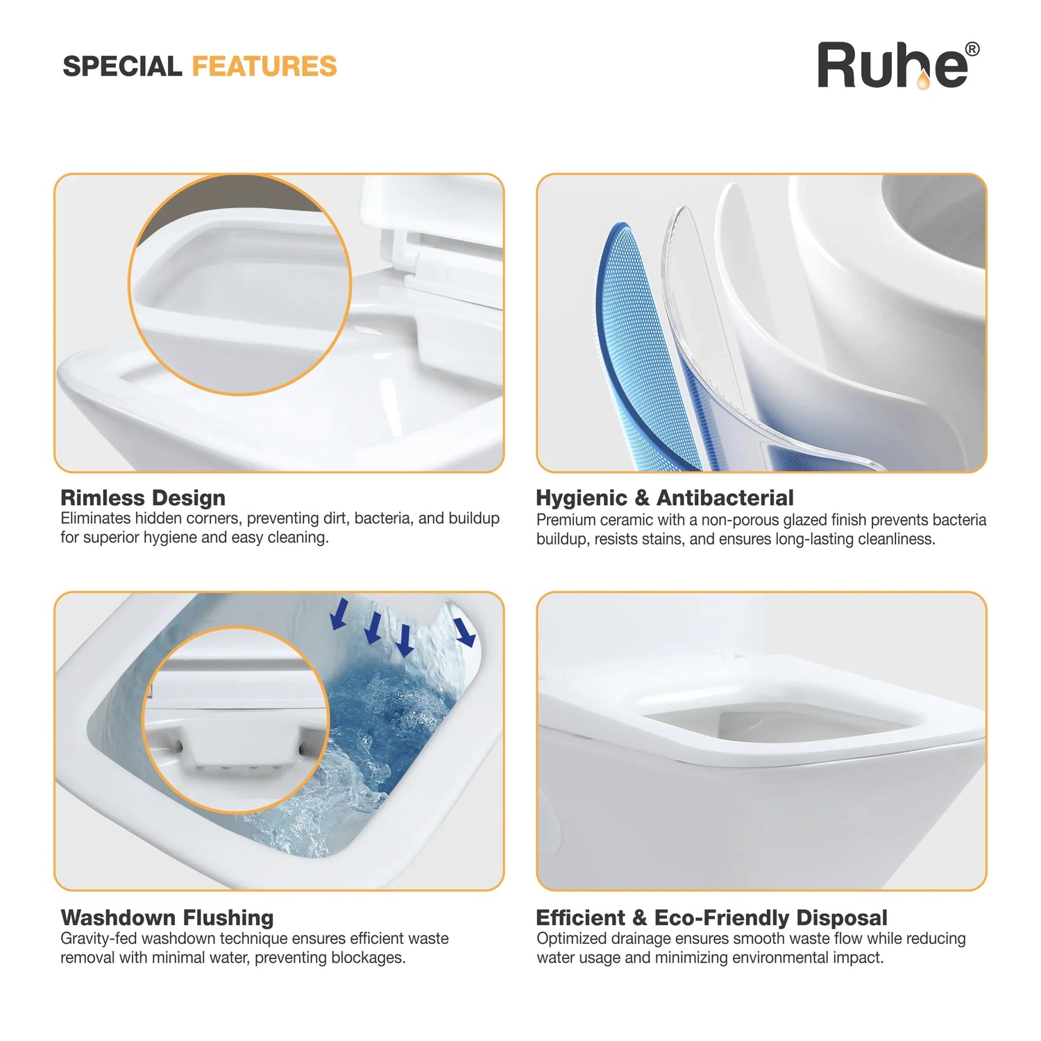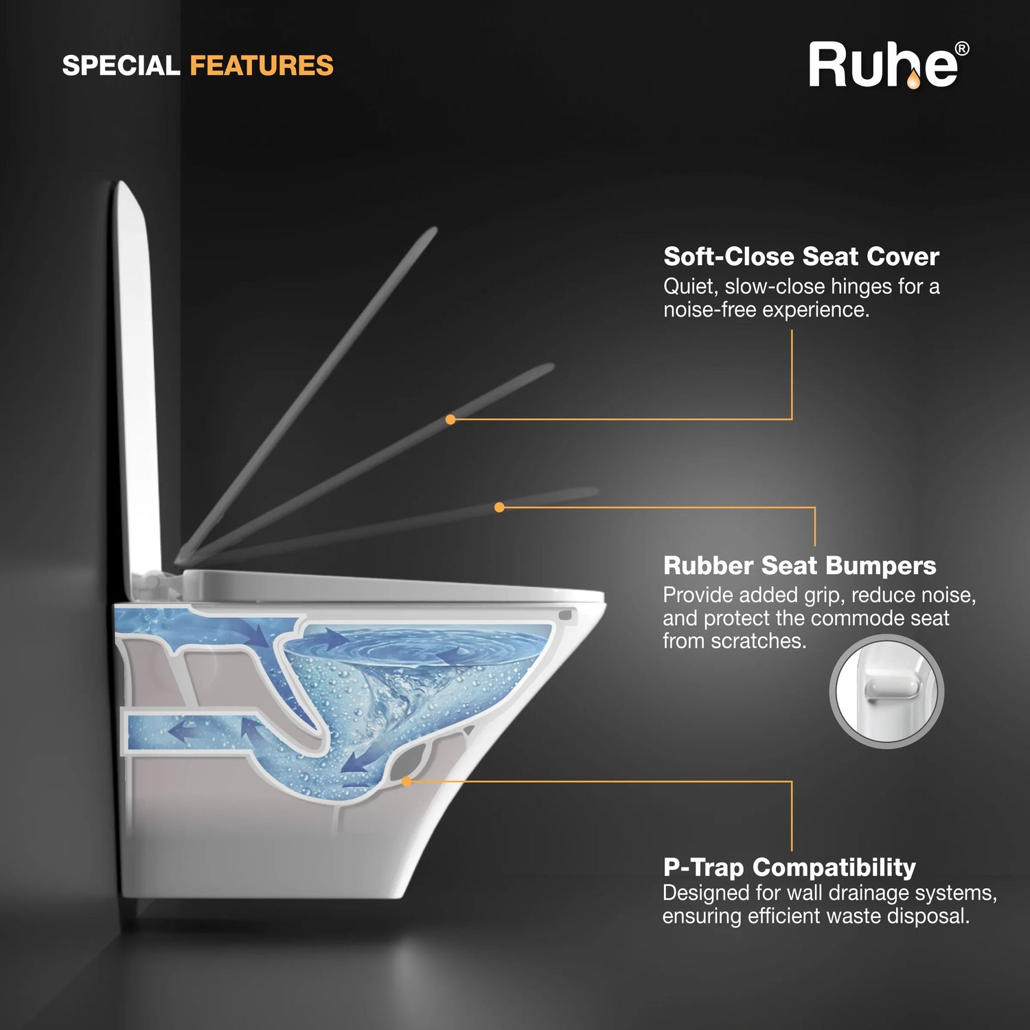 WALL-HUNG DESIGN: Sleek, space-saving wall-mounted installation creates a floating effect, enhancing modern aesthetics and allowing for easy floor maintenance.