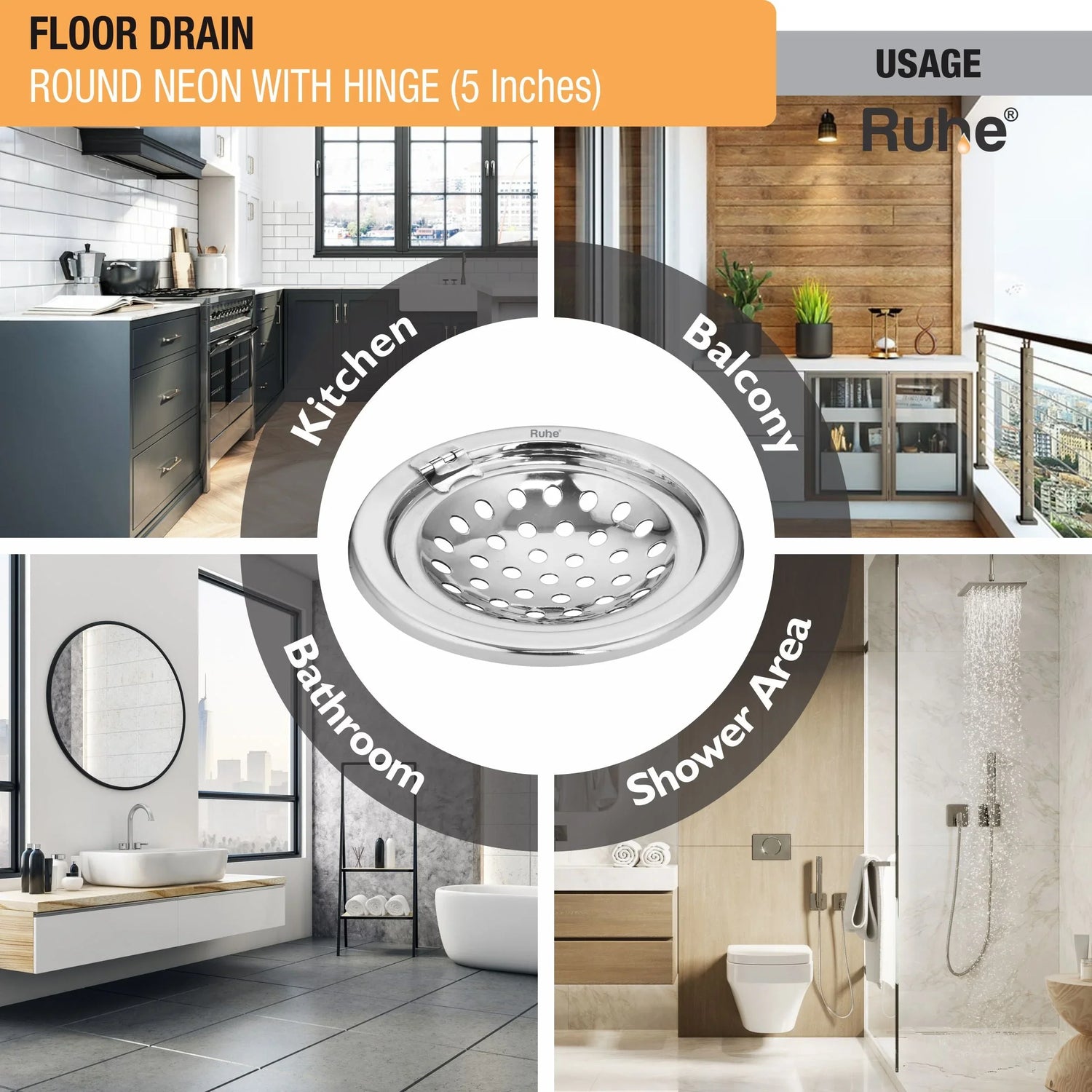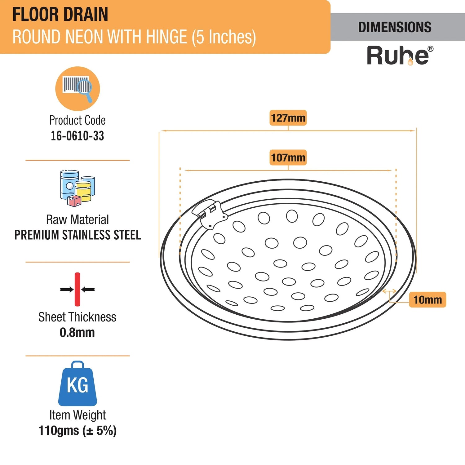 Neon Round Floor Drain (5 Inches) with Hinged Grating Top (Pack of ...