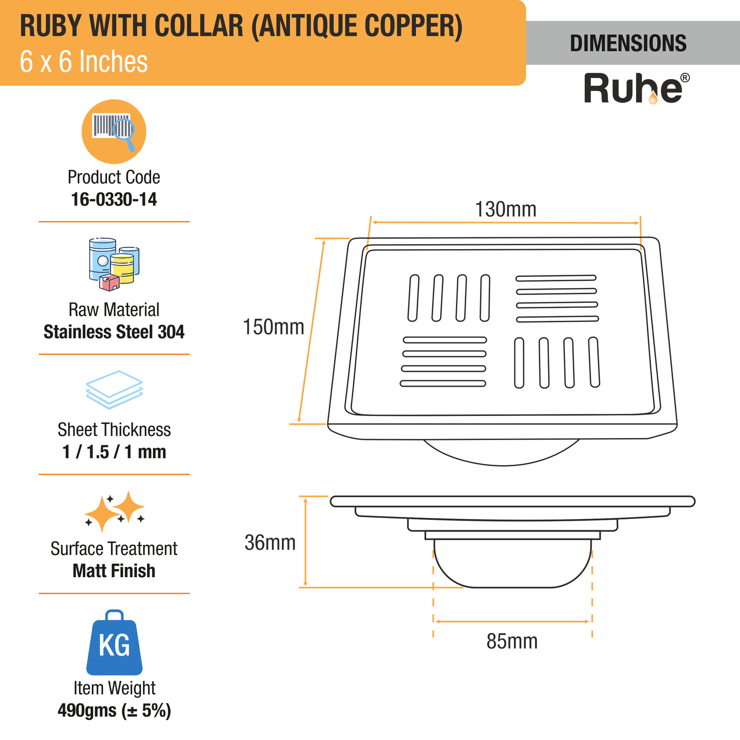 Made from 1.5 mm thick 304-grade stainless steel with an antique copper finish, this floor drain ensures efficient drainage.