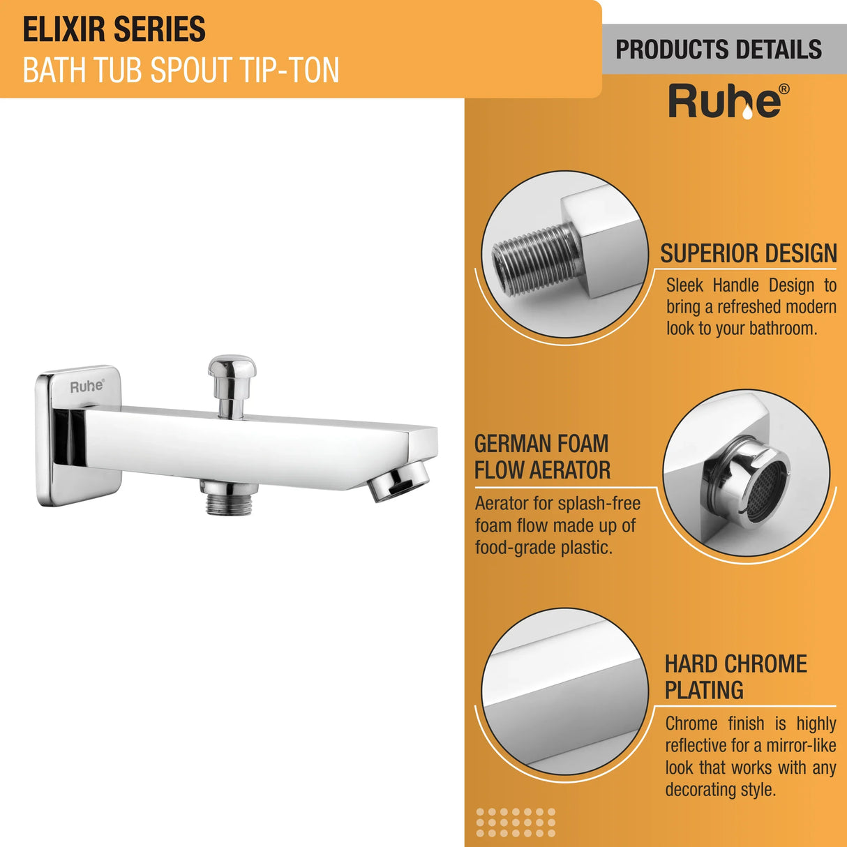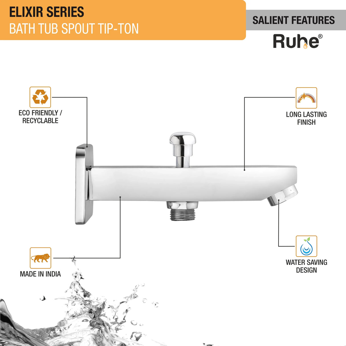Elixir Bathtub Tap with Tip-Ton Button (Only Spout) - by Ruhe