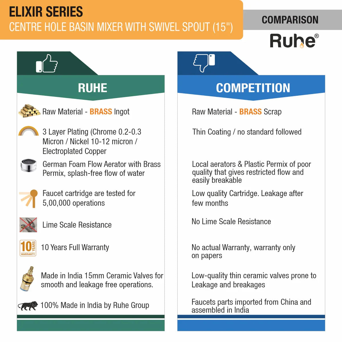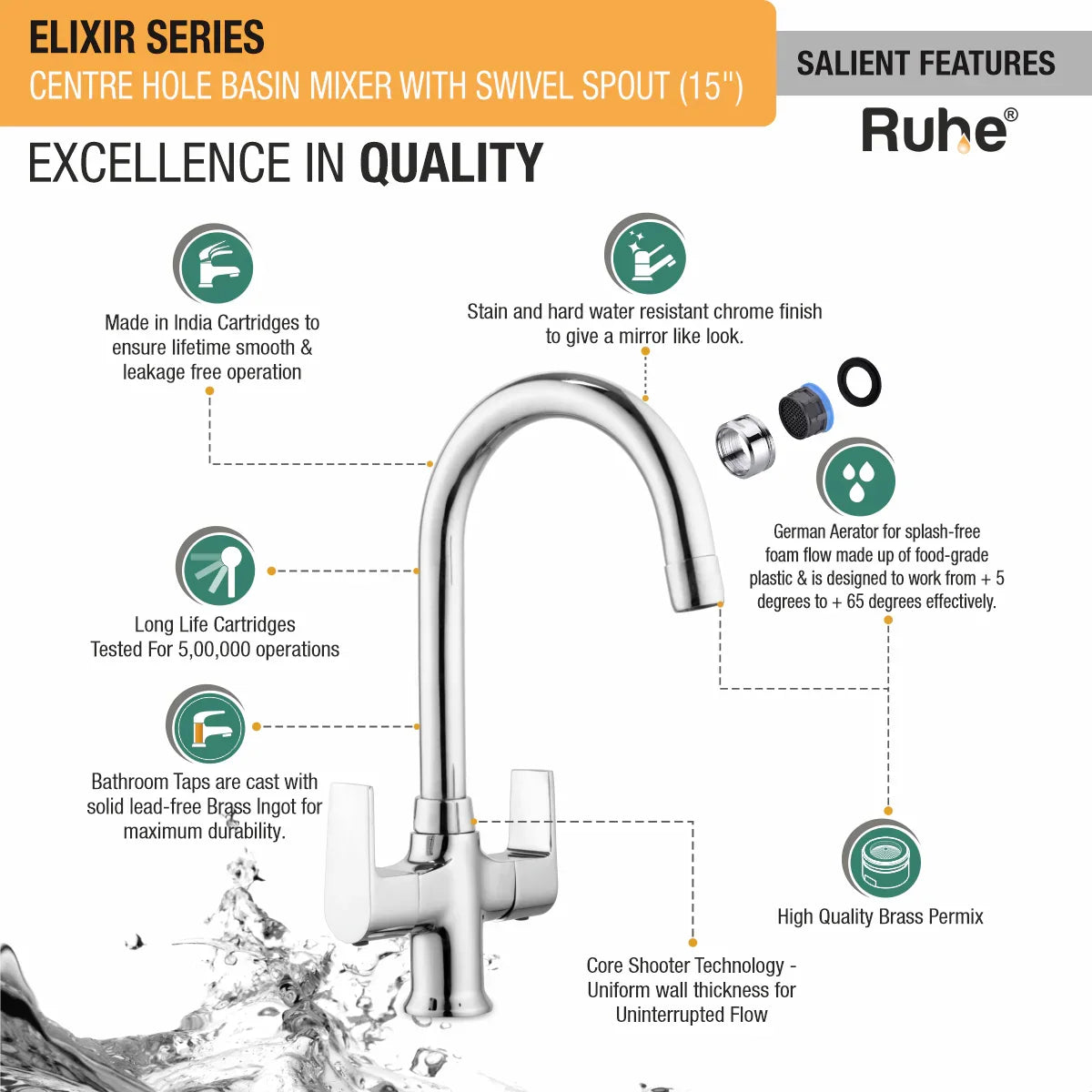 Elixir Deck Mount Wash Basin Mixer Tap with Swivel Spout