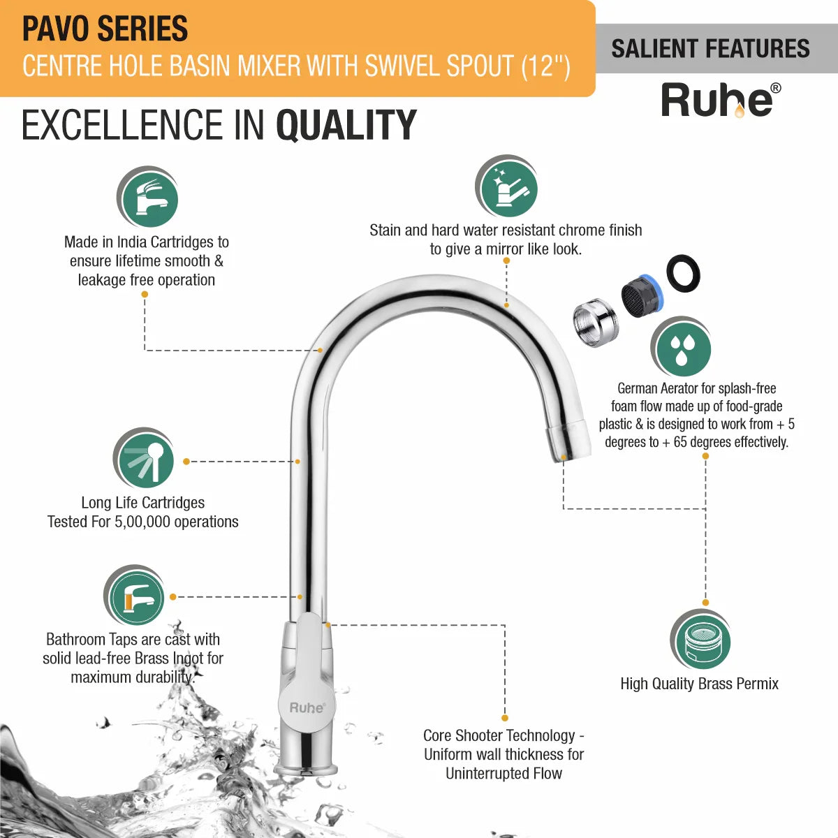 Pavo Deck-mount Wash Basin Mixer Tap with Small Swivel Spout (12&qu...