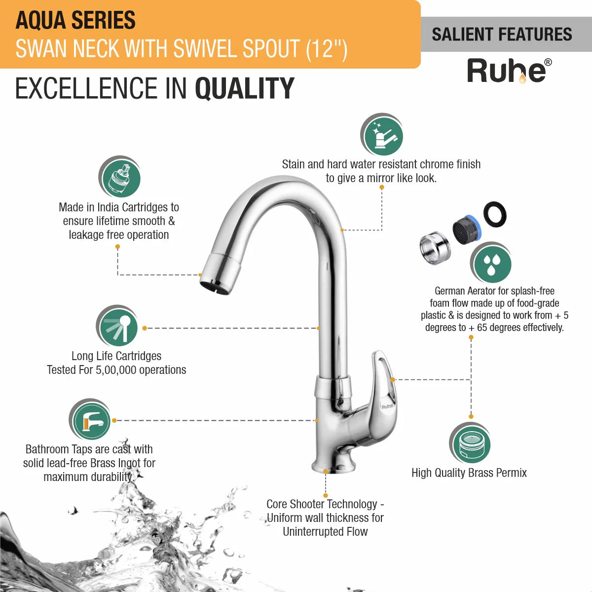 Aqua Deck-mount Kitchen Sink Tap with Small Swivel Spout (12")...