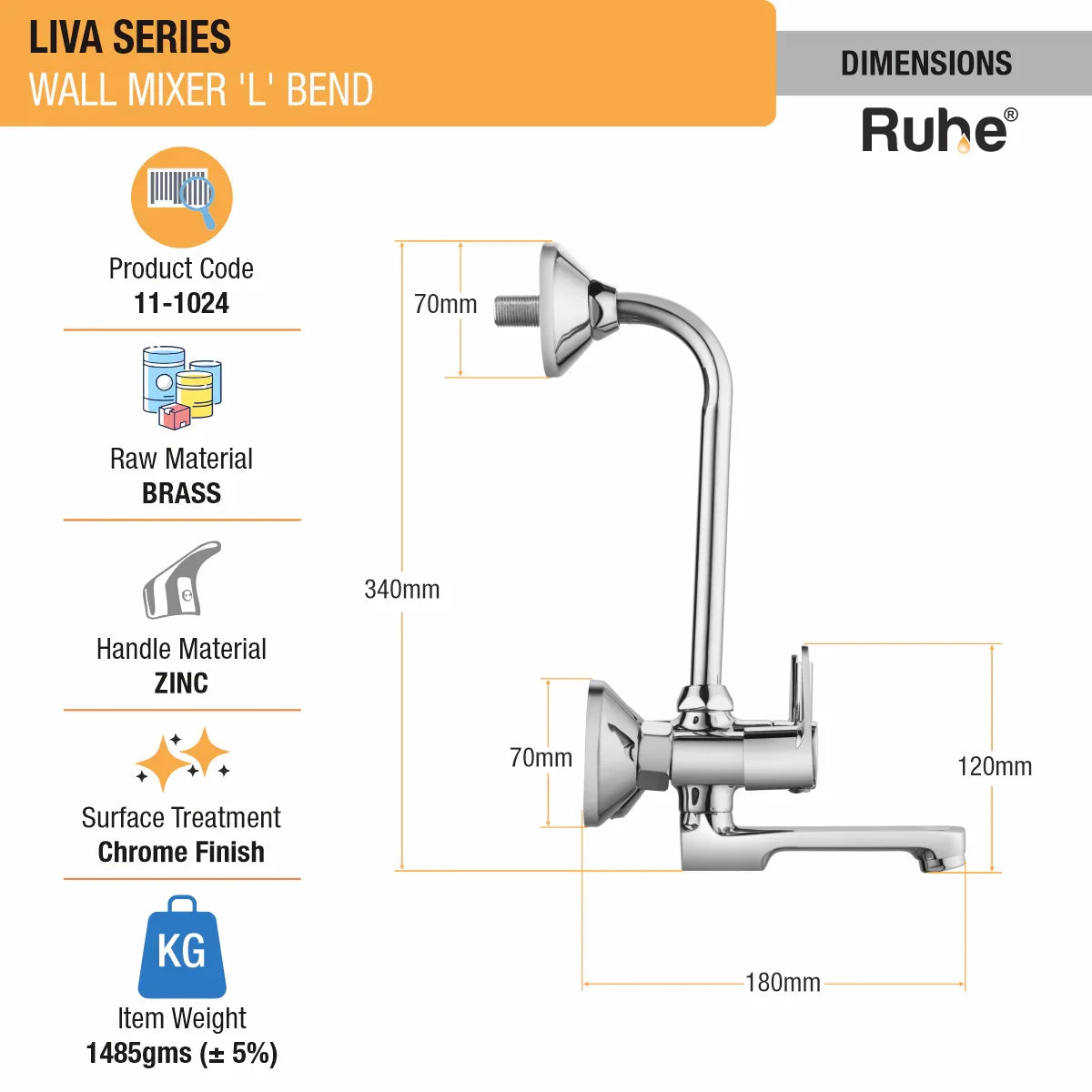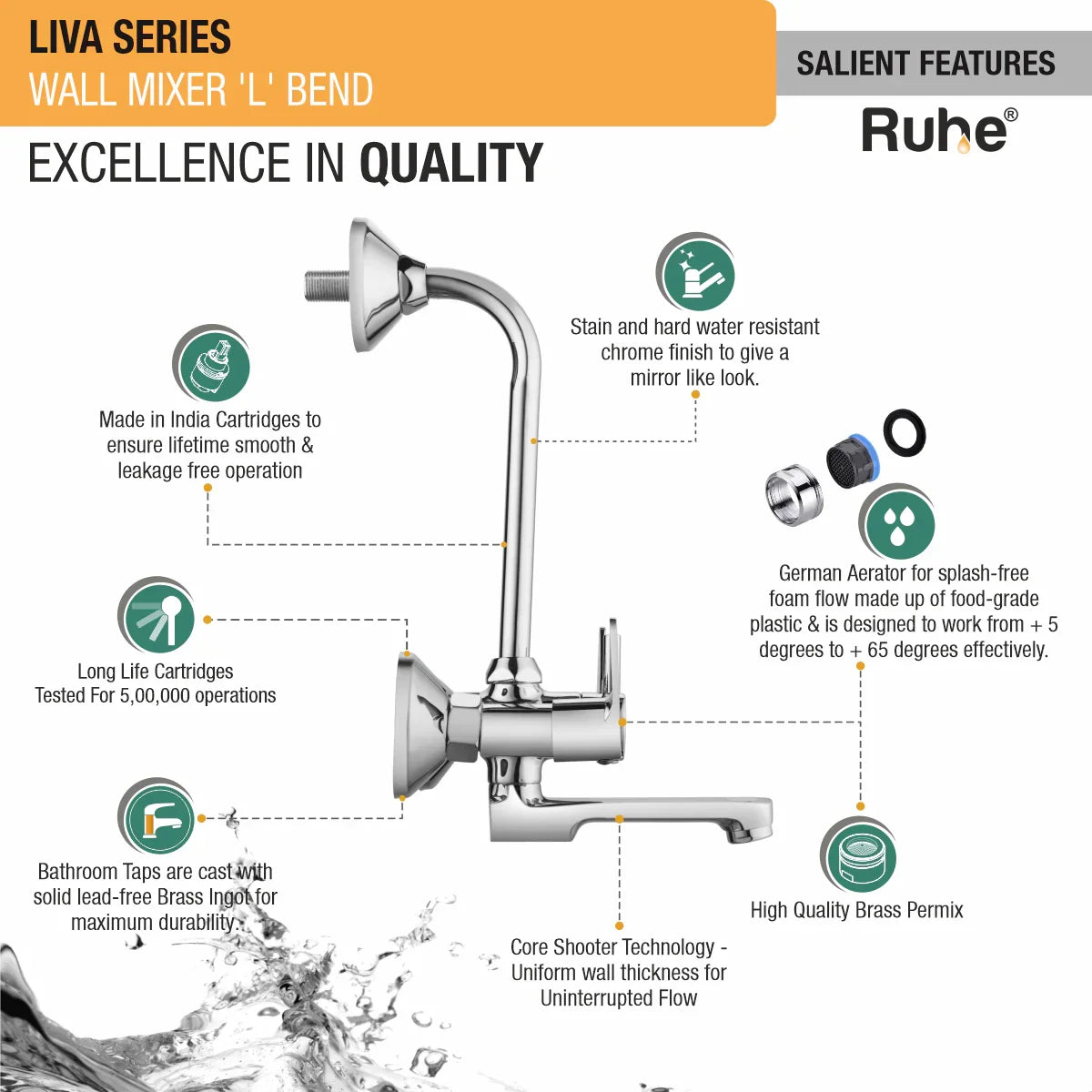 Liva Wall Mixer Tap with L Bend Pipe - by Ruhe