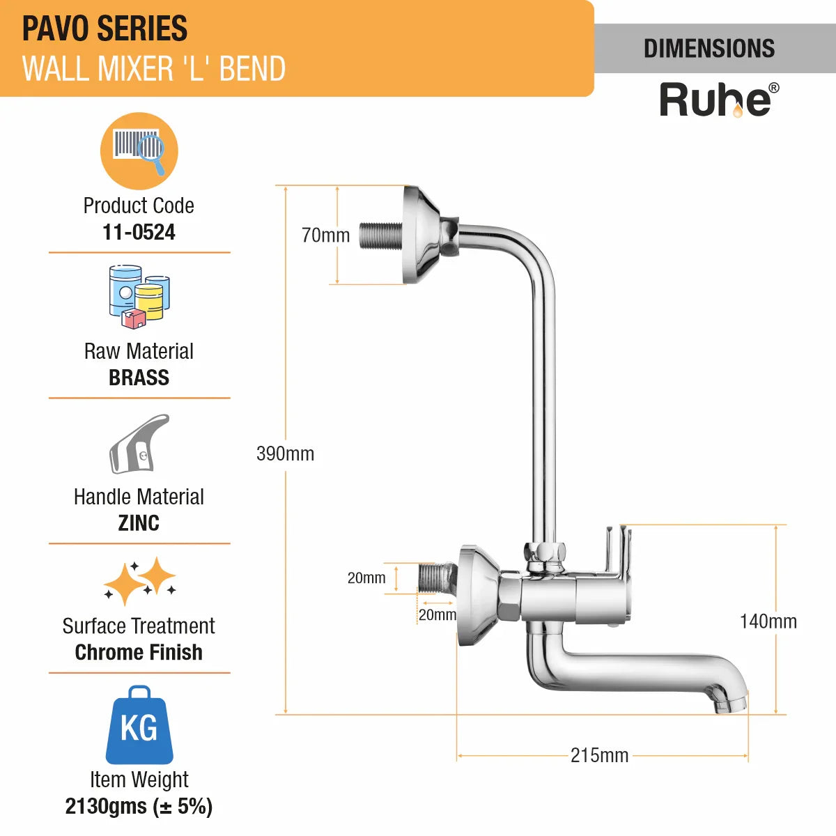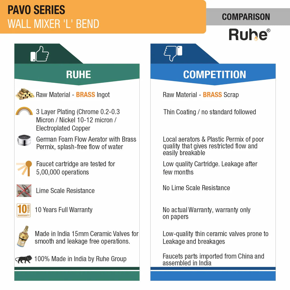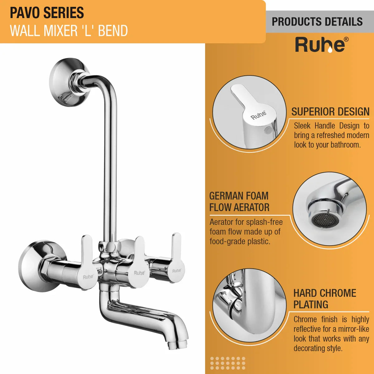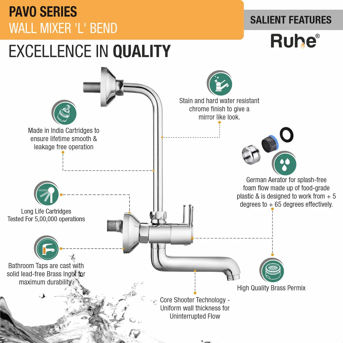Pavo Wall Mixer Tap with L Bend Pipe - by Ruhe