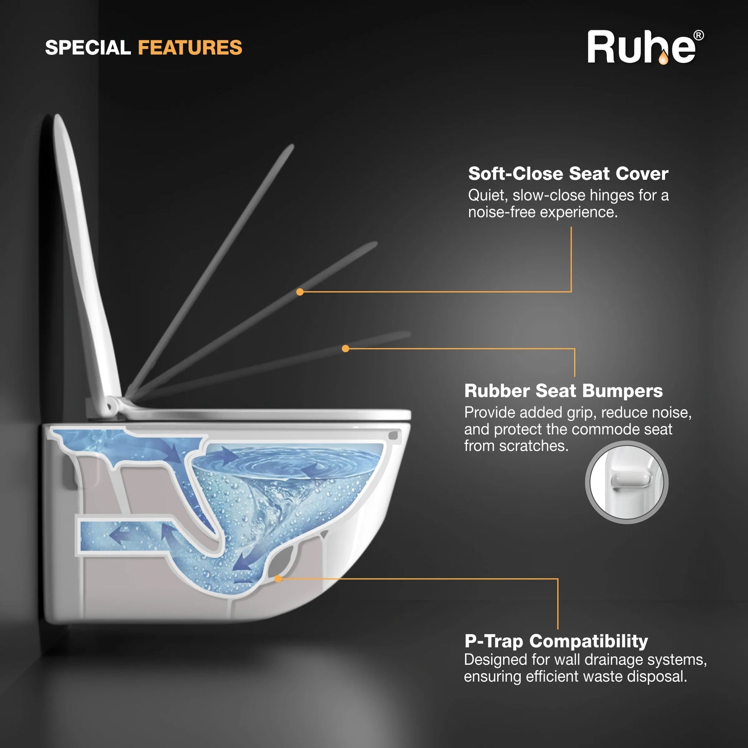 Risa Wall-Hung Rimless Western Commode with Washdown Flushing System