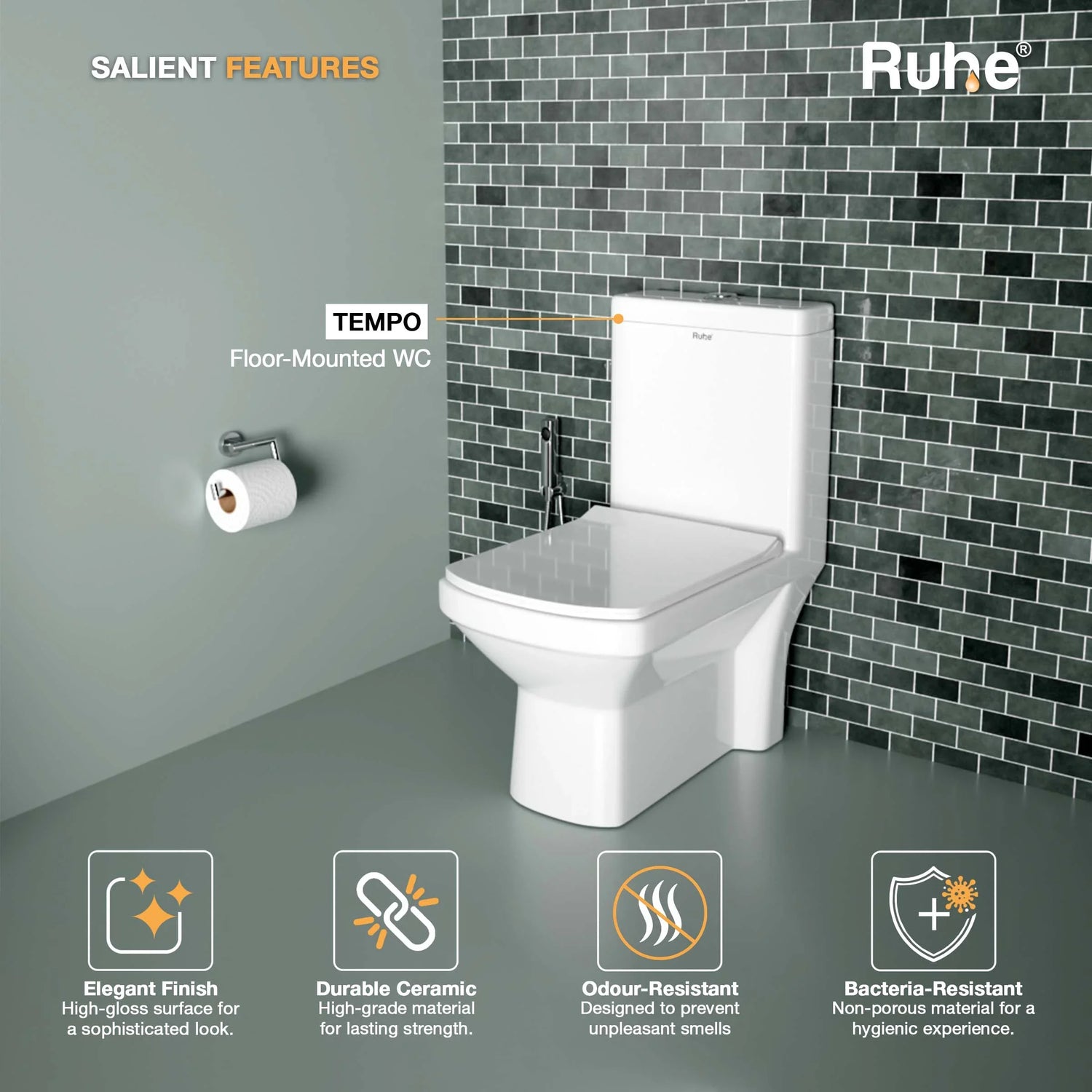 WATER-EFFICIENCY: Designed with a 10-litre flush tank capacity, the siphonic flushing system maximizes water efficiency, saving up to 67% of water per flush while maintaining a consistently clean toilet bowl.