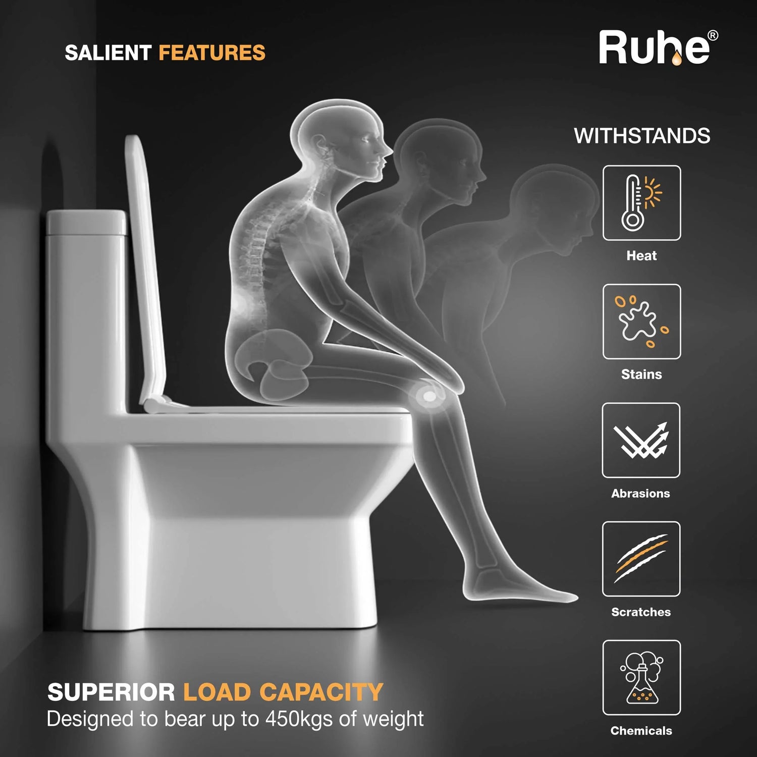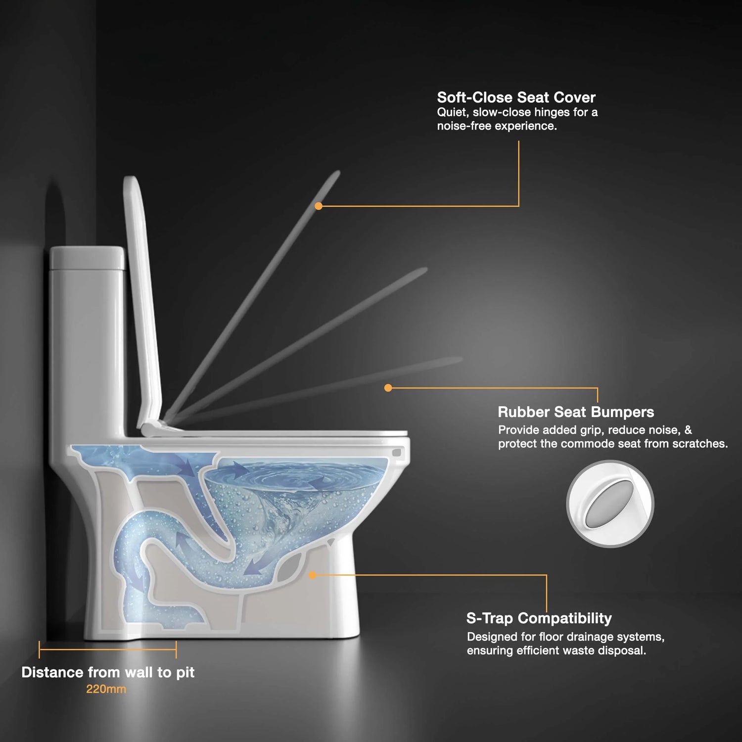 SOFT CLOSE SEAT COVER: Equipped with slow-closing hinges to prevent sudden slamming, providing a quiet and durable user experience. Fitted with rubber bumpers for added stability, noise reduction and surface protection.