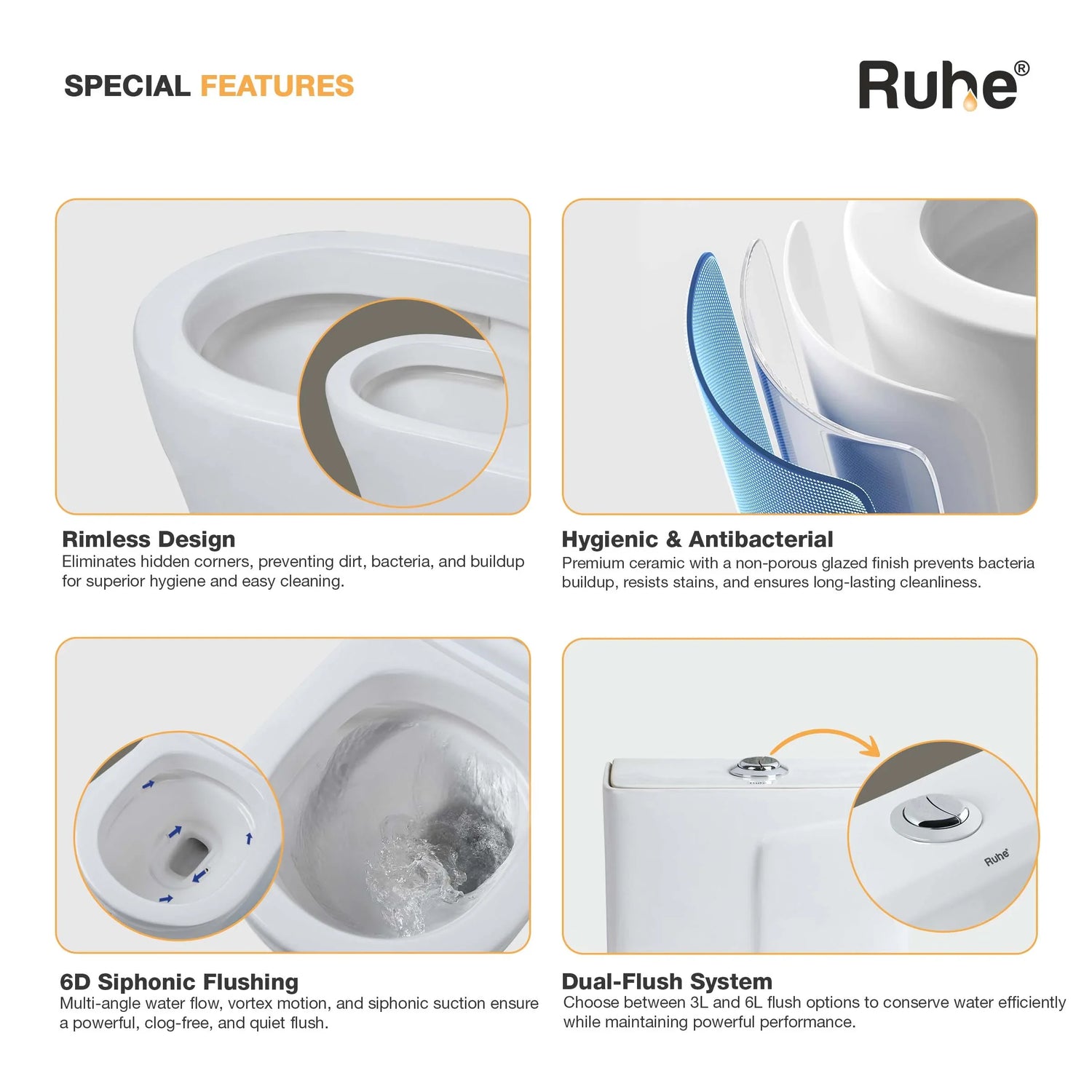RIMLESS DESIGN: The innovative rimless structure eliminates hidden corners where dirt and bacteria accumulate, ensuring superior hygiene and effortless cleaning.