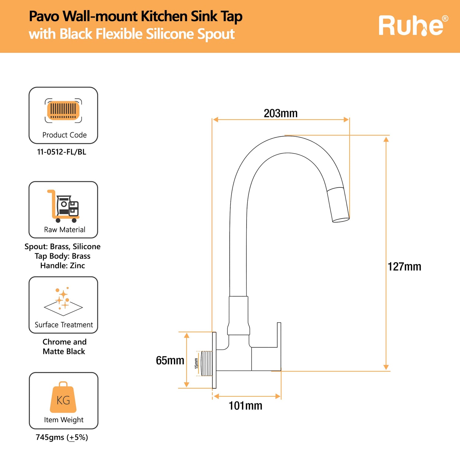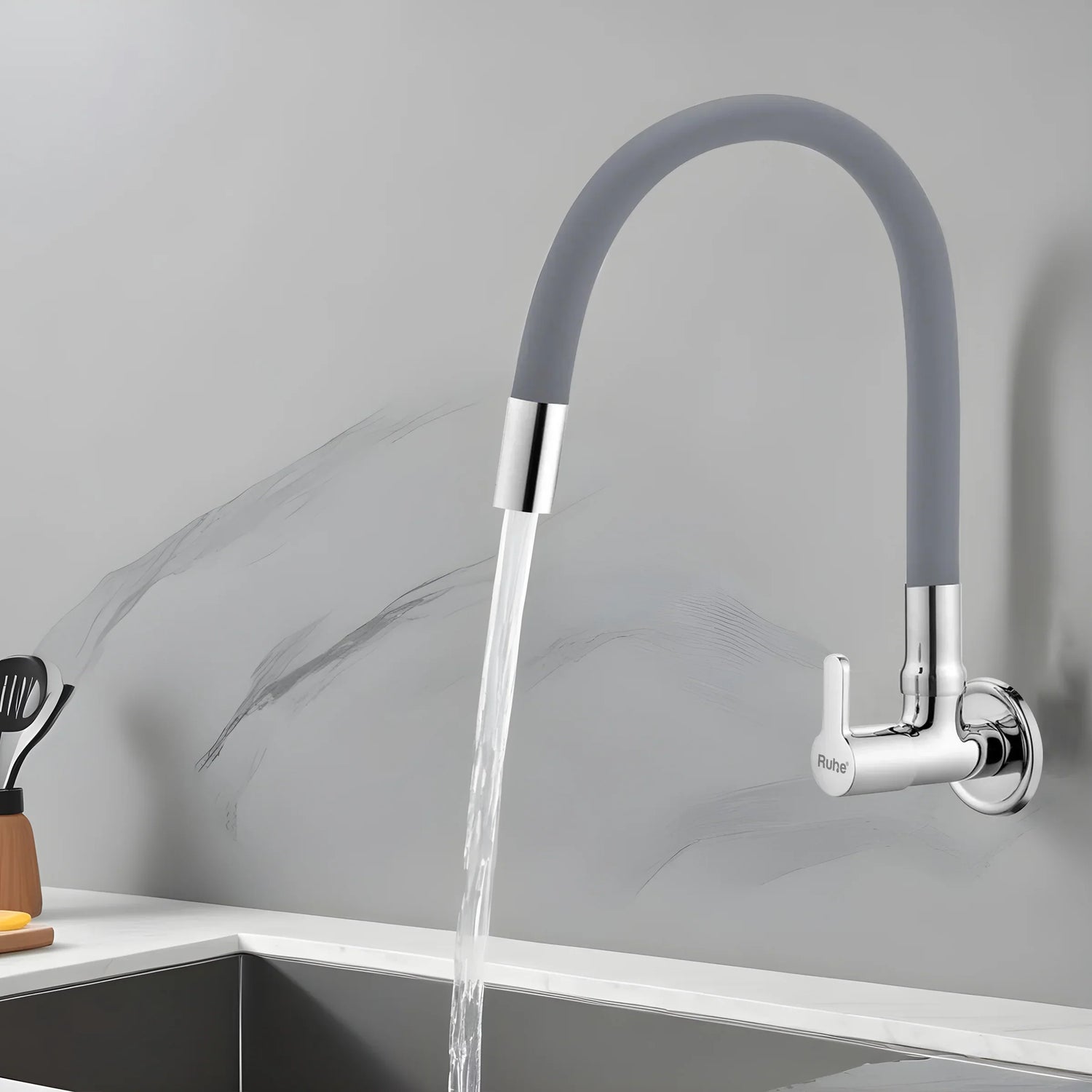 Pavo Wall Mount Kitchen Sink Tap with Coloured Flexible Silicone Spout