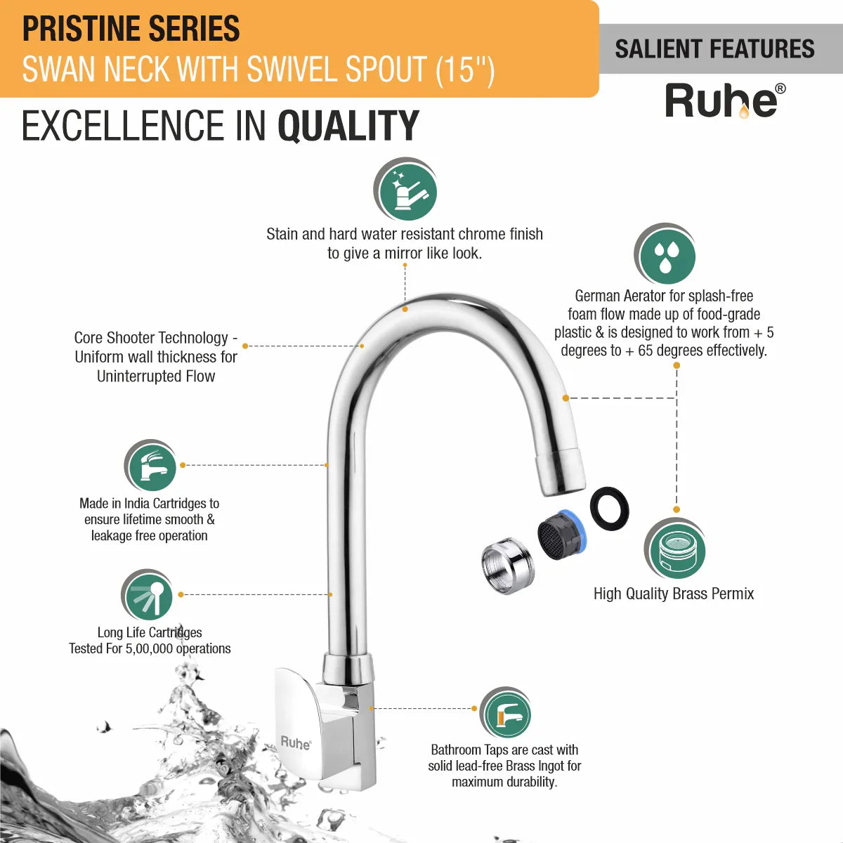 Pristine Deck Mount Wash Basin Tap with Swivel Spout