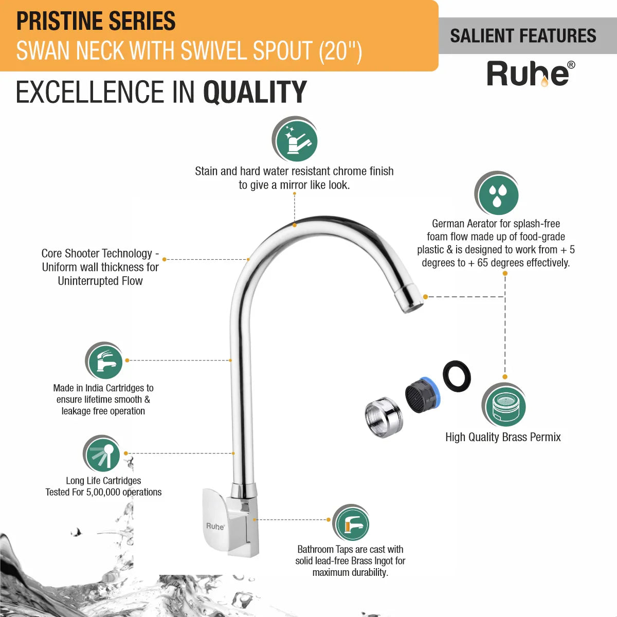 Pristine Deck Mount Wash Basin Tap with Swivel Spout - Silver / 12 Inches is backordered and will ship as soon as it is back in stock.
