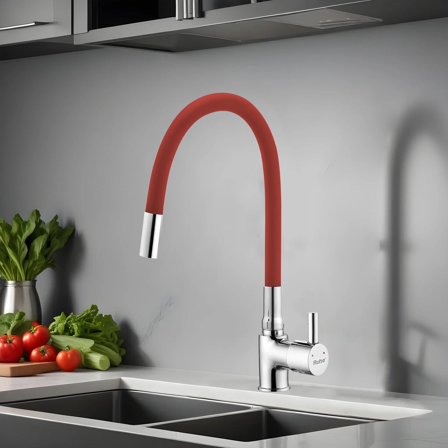 Kara Single Lever Deck-mount Kitchen Sink Mixer Tap with Red Silico...