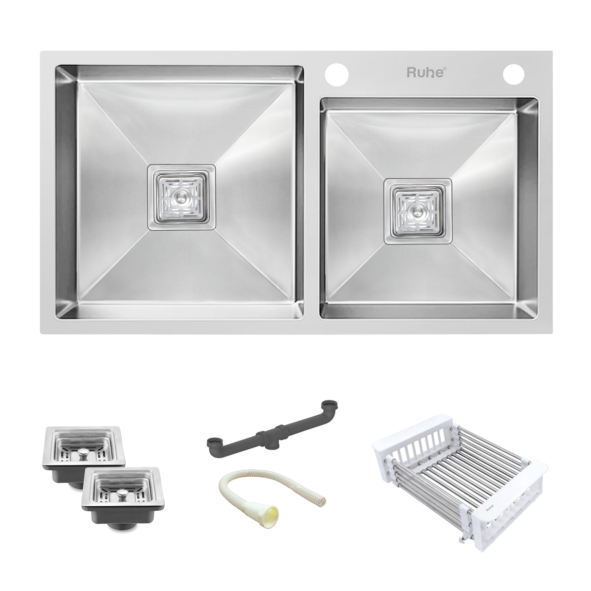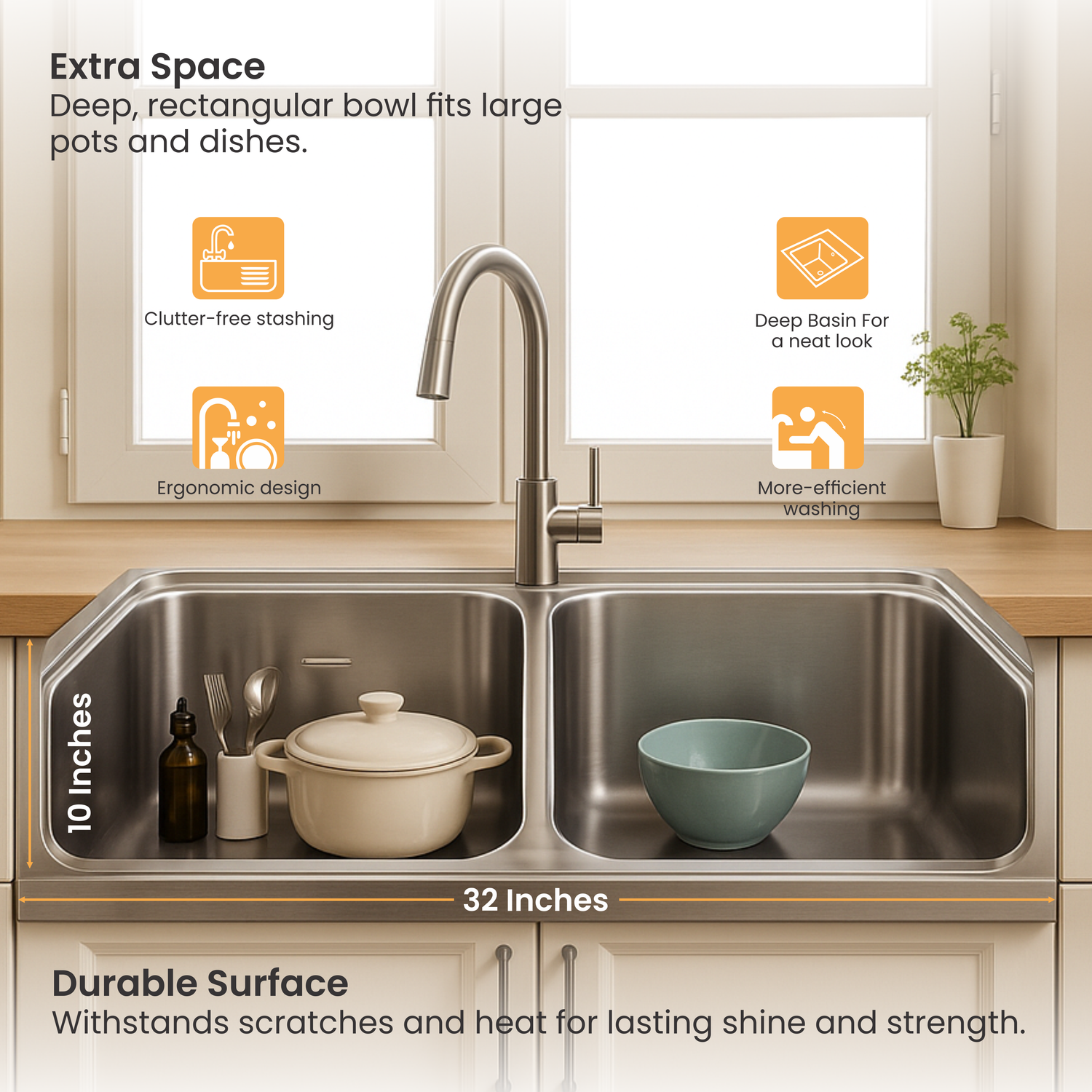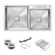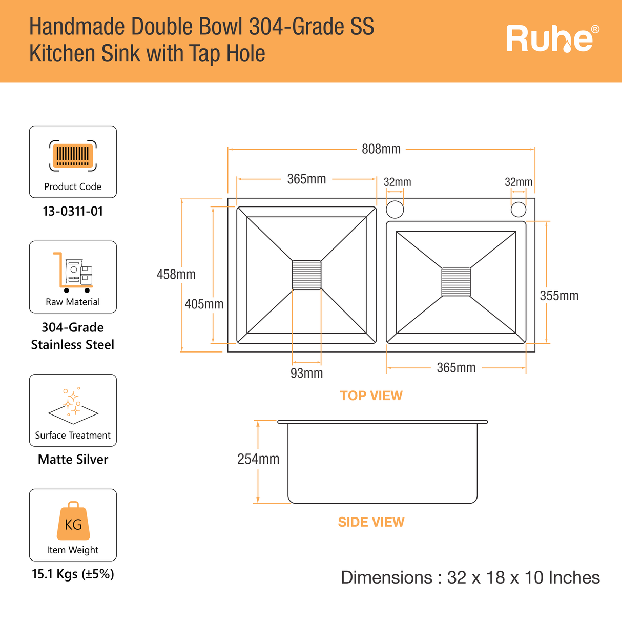 Handmade Double Bowl with Tap Hole Kitchen Sink (32 x 18 x 10 Inches)