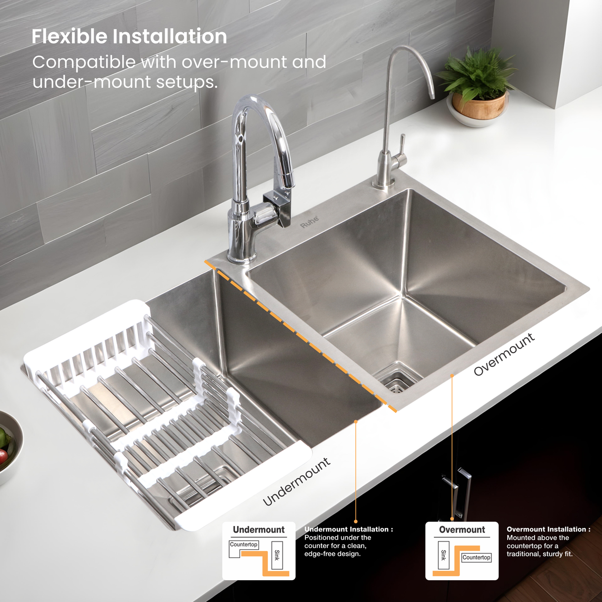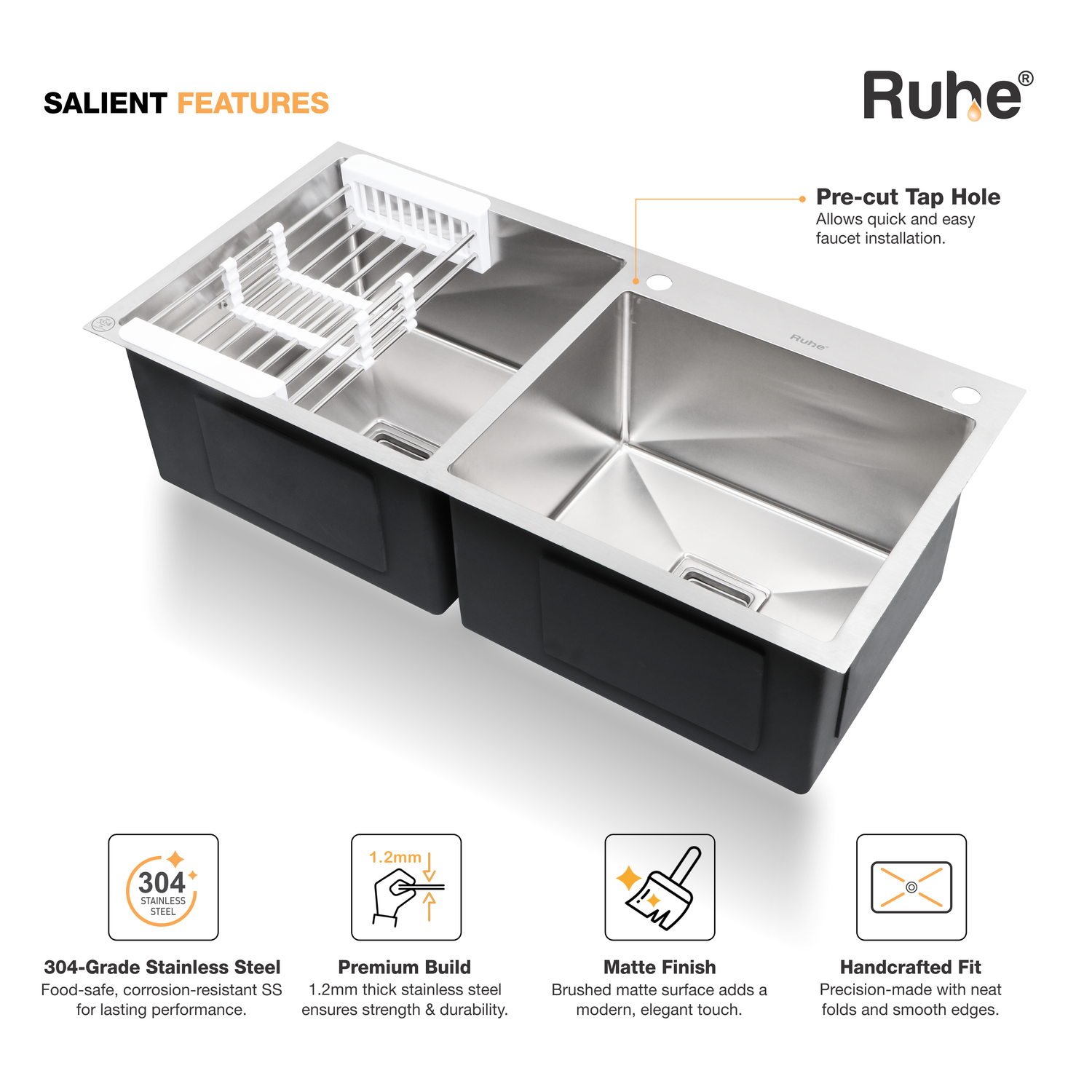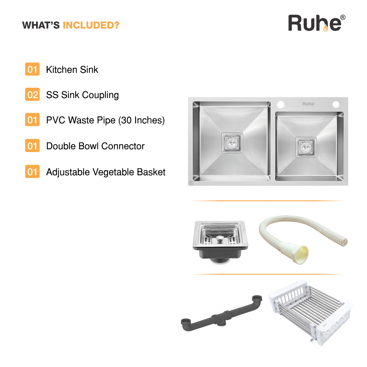 Handmade Double Bowl with Tap Hole Kitchen Sink (32 x 18 x 10 Inches)