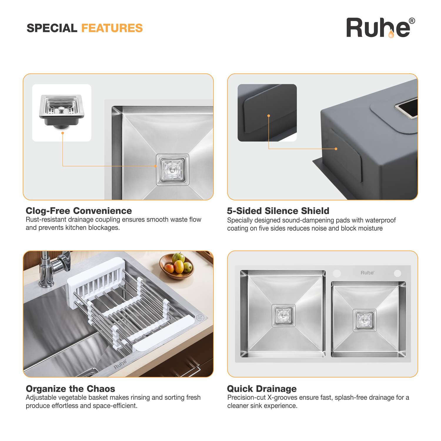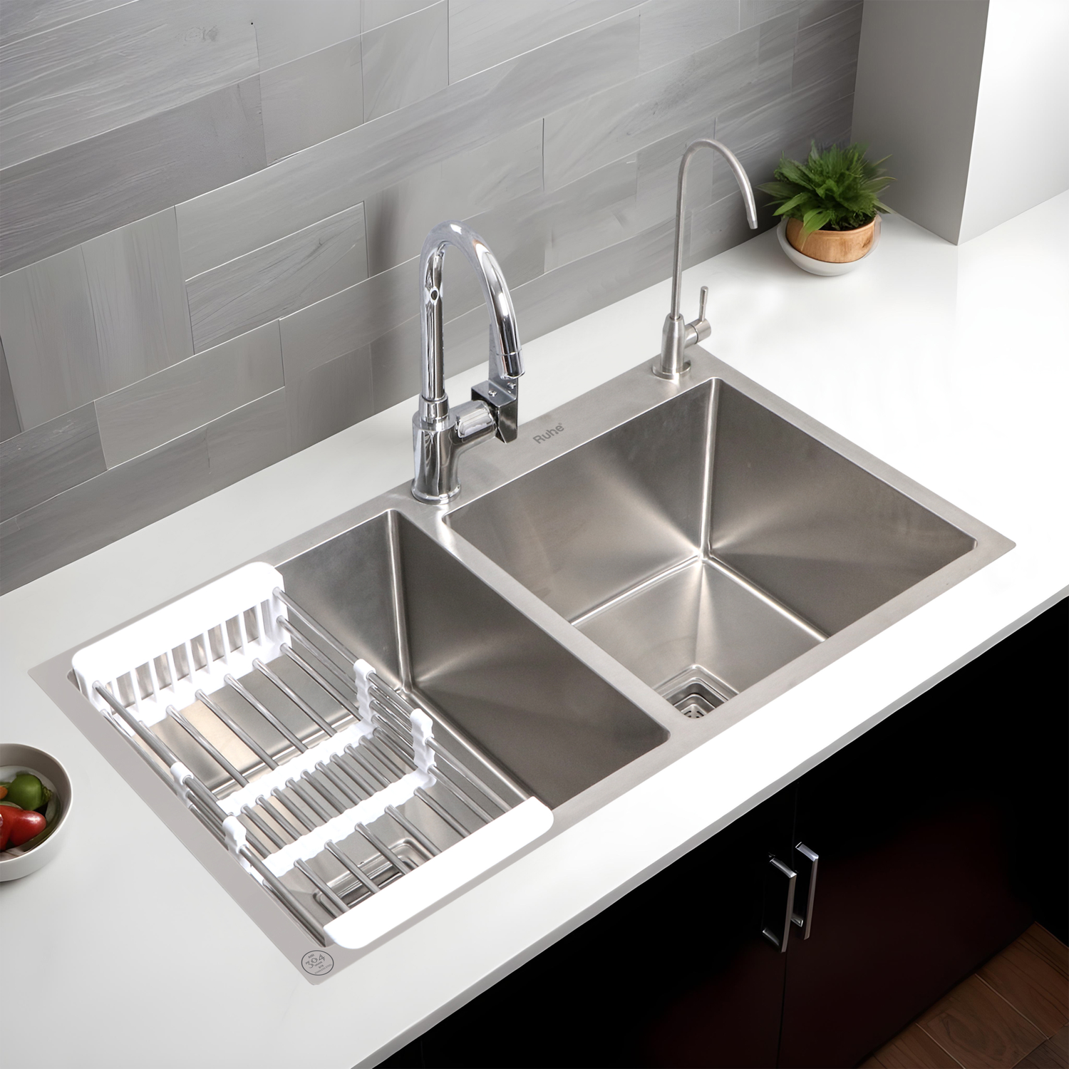 Handmade Double Bowl with Tap Hole Kitchen Sink (32 x 18 x 10 Inches) - Silver is backordered and will ship as soon as it is back in stock.