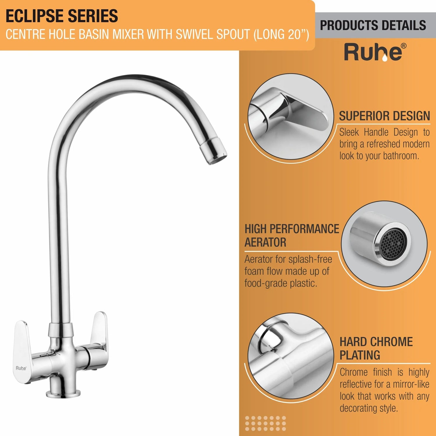 Eclipse Deck Mount Wash Basin Mixer Tap with Swivel Spout