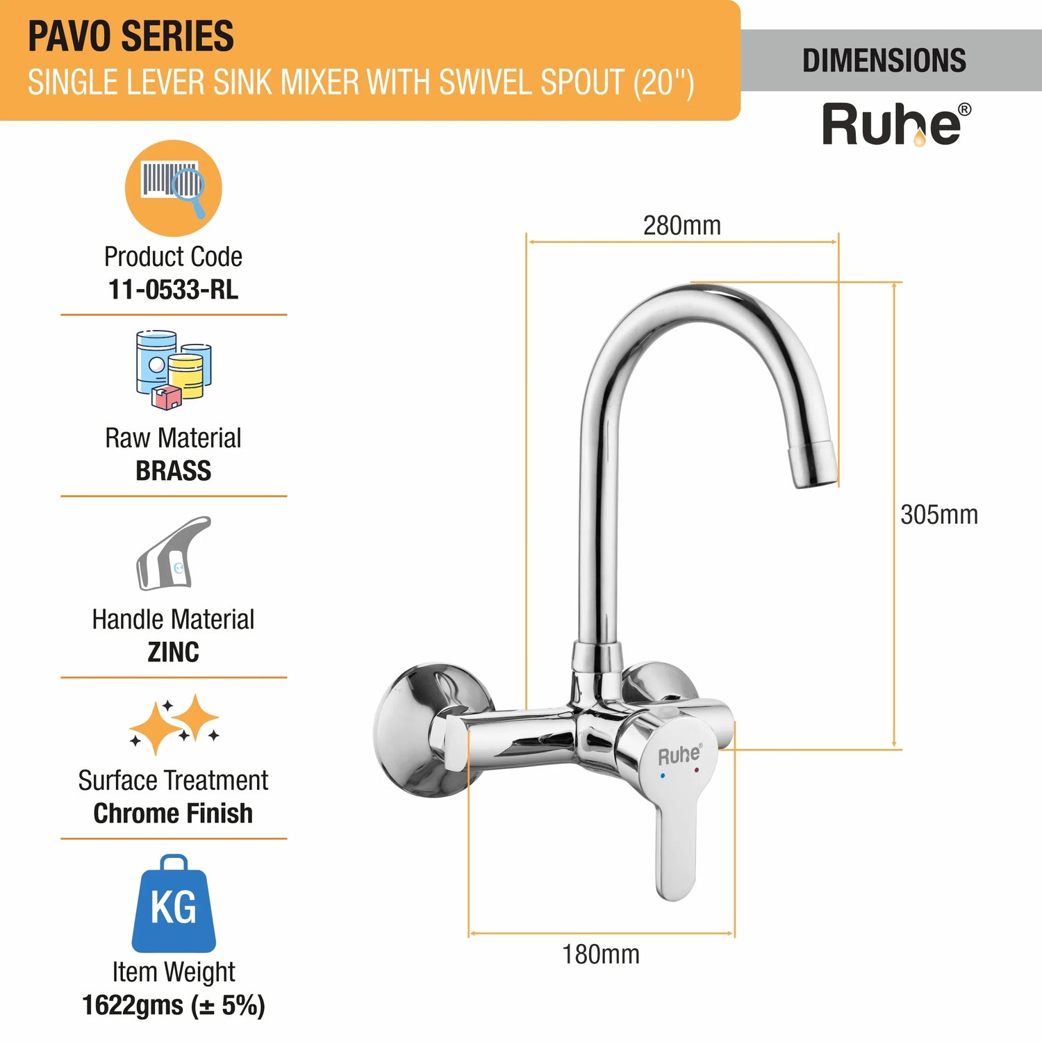 Pavo Single Lever Wall-mount Kitchen Sink Mixer Tap with Swivel Spout