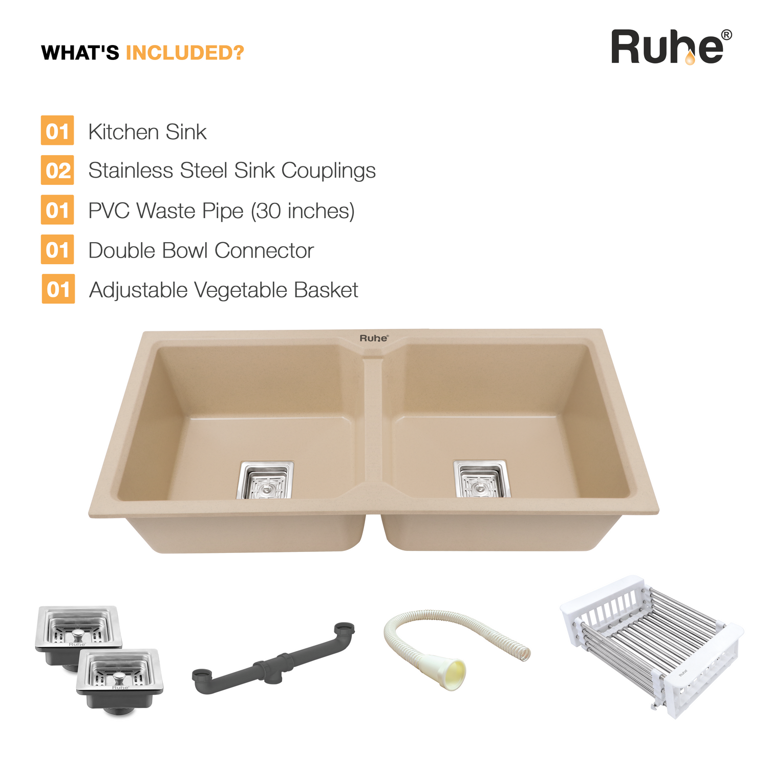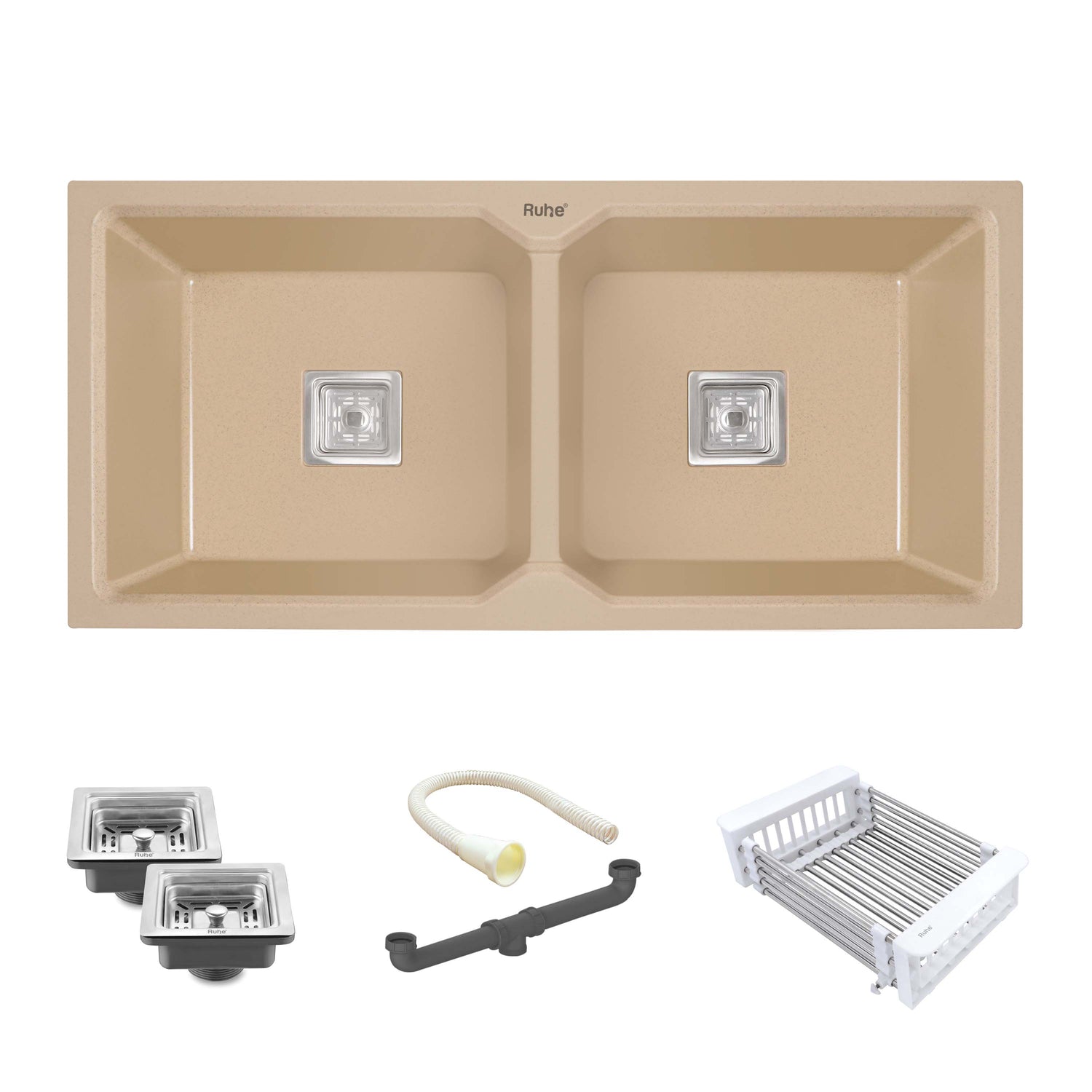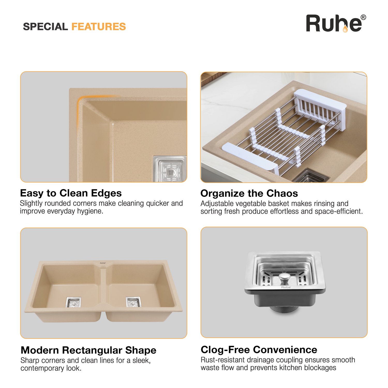 Crafted from 14mm thick quartz and resin, this sink combines a double-bowl design for efficient multitasking and a warm Sand Choco finish.