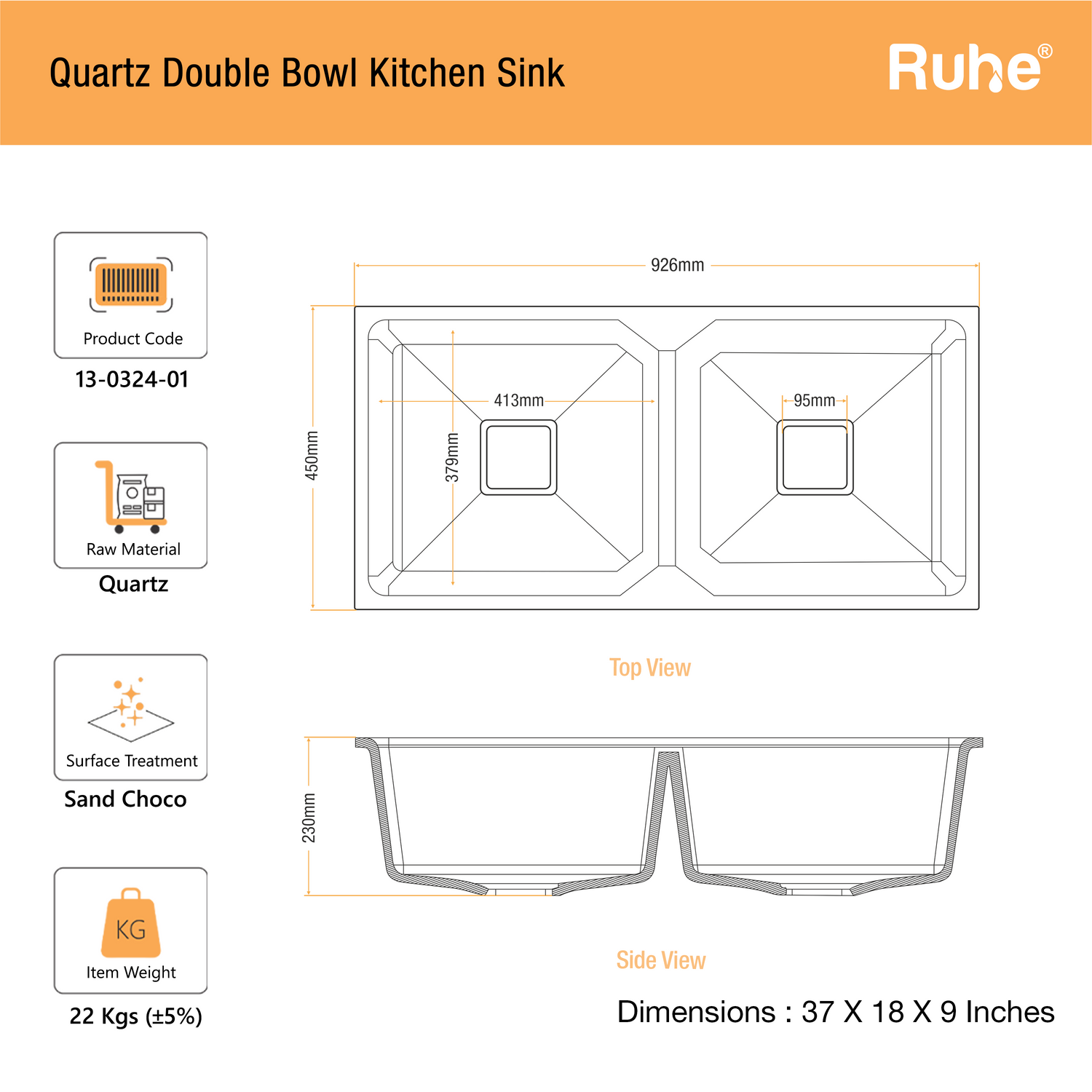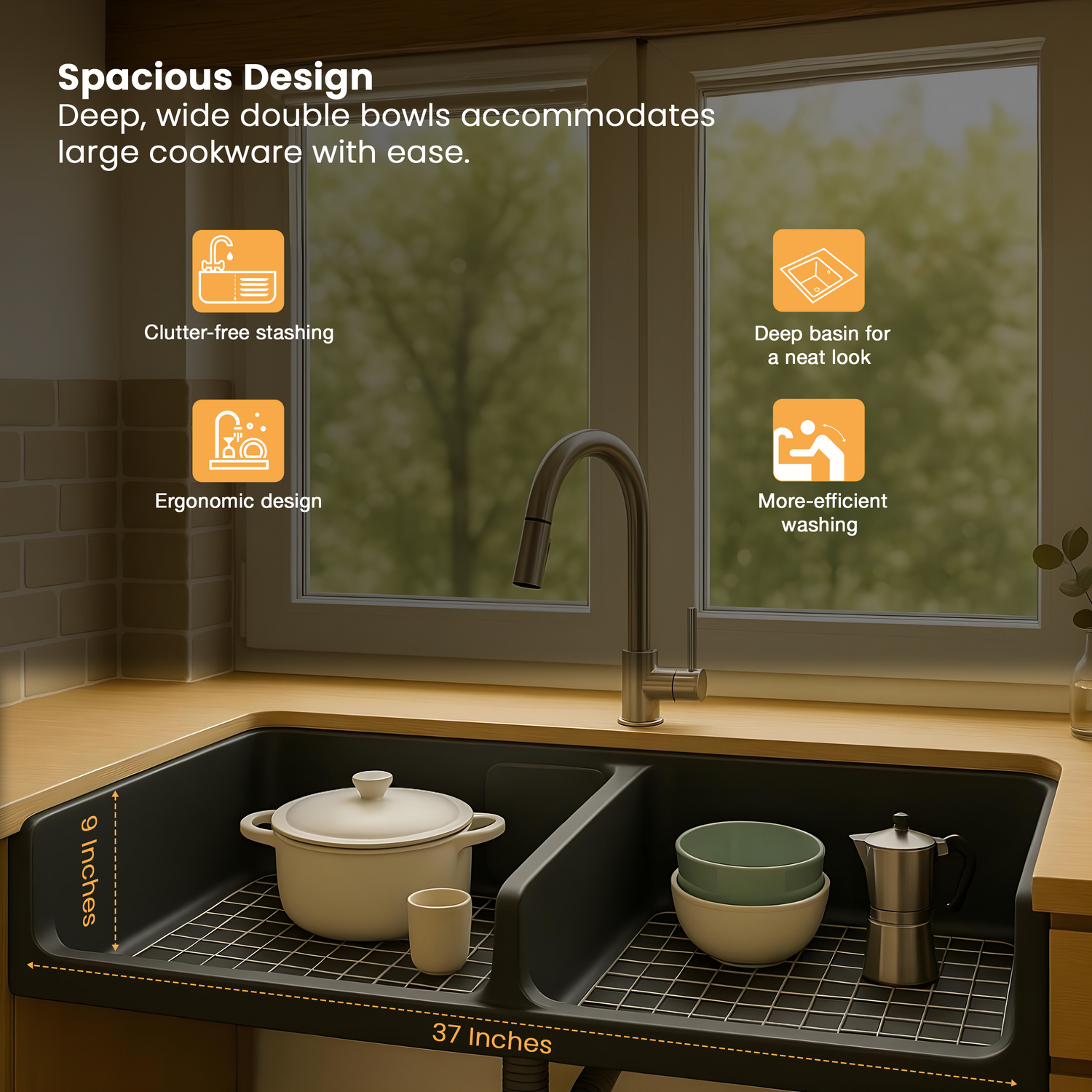 Quartz Double Bowl Kitchen Sink (37 x 18 x 9 Inches)