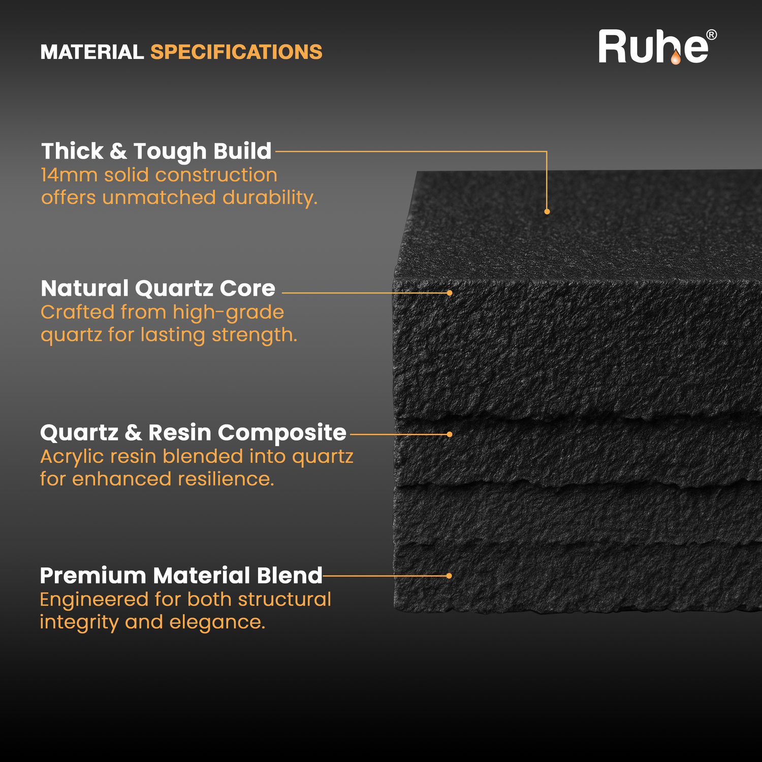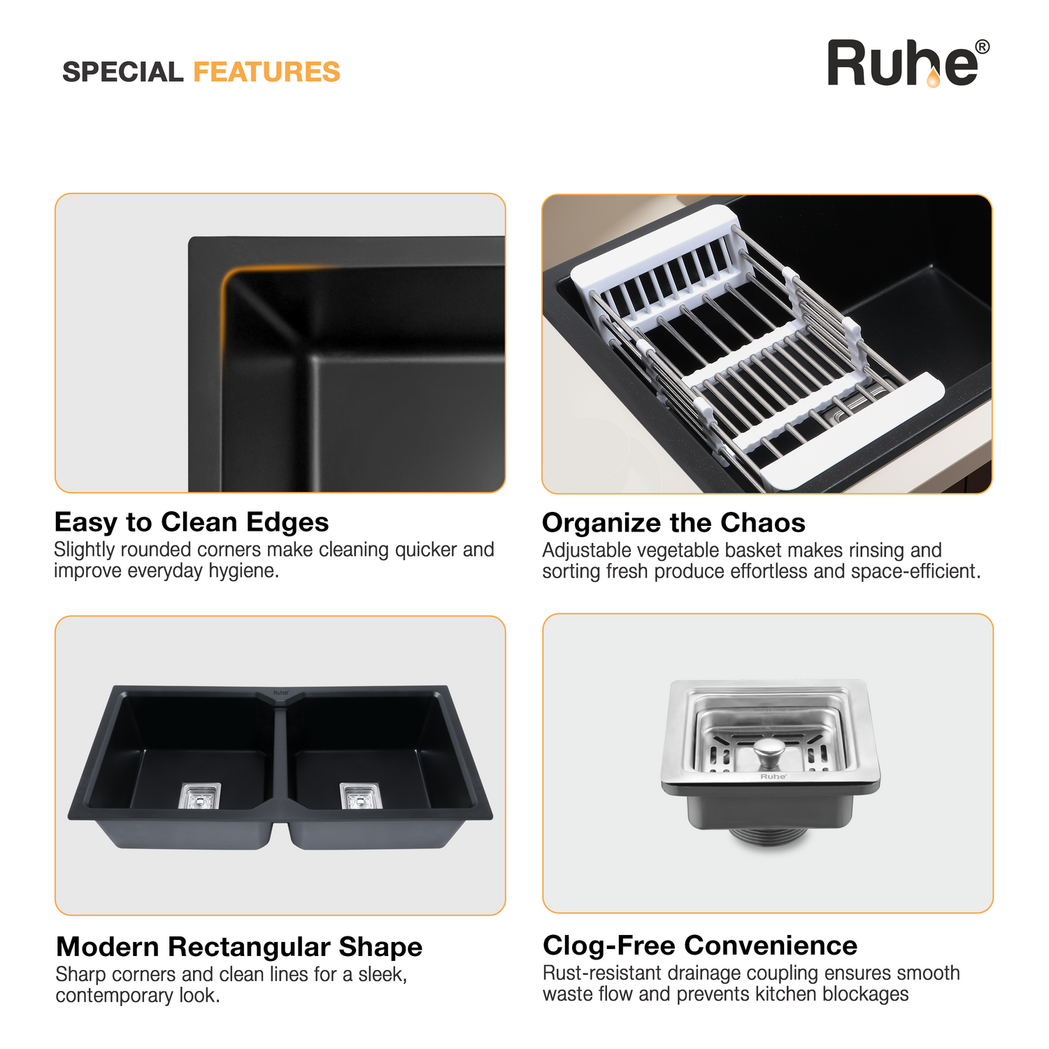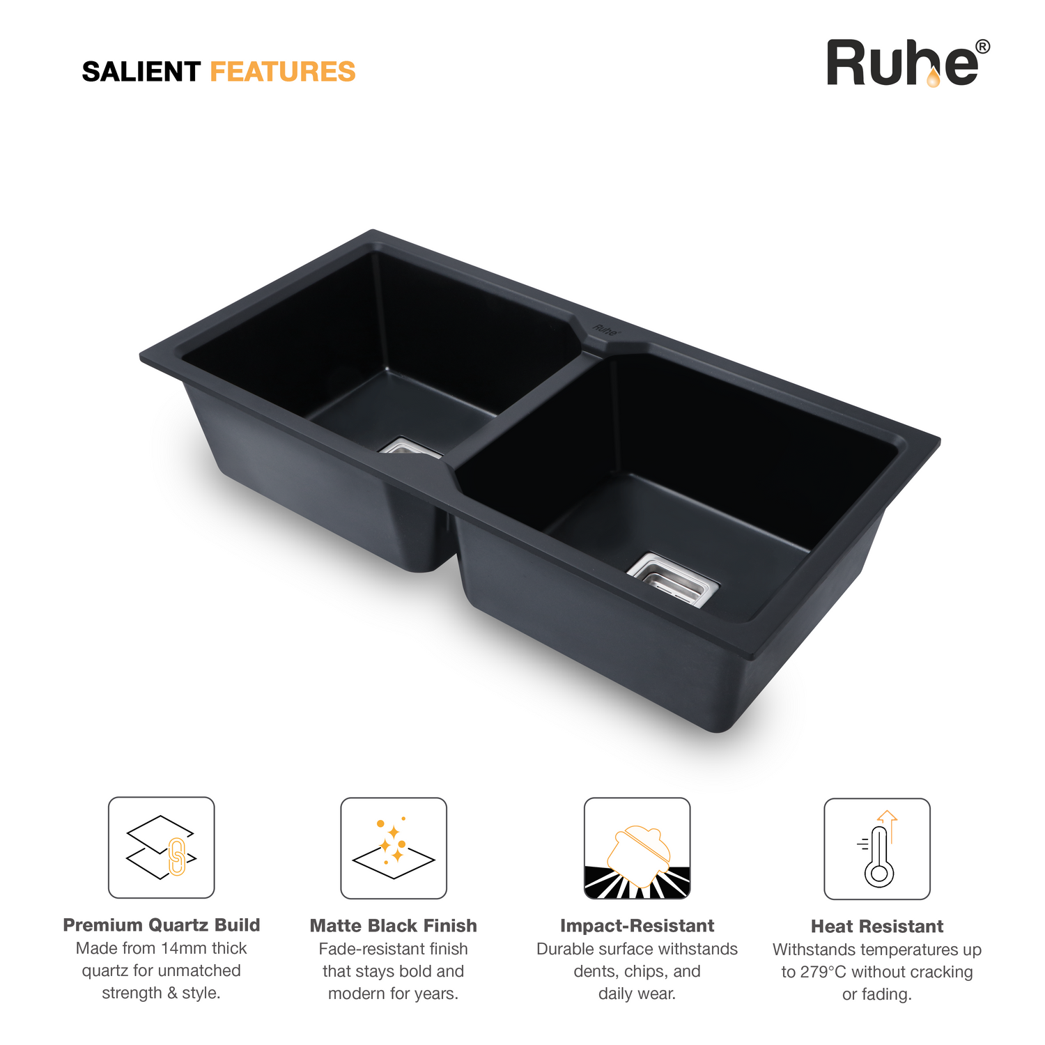 Crafted from 14mm thick quartz and resin, this sink combines a double-bowl design for efficient multitasking and a bold Matte Black finish.