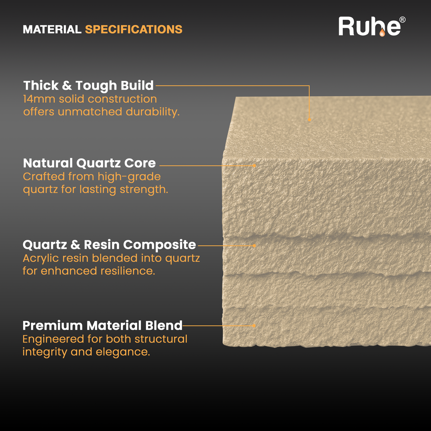 Crafted from 14mm thick quartz and resin, this sink combines a double-bowl design for efficient multitasking and a soft Sand Pluto finish.