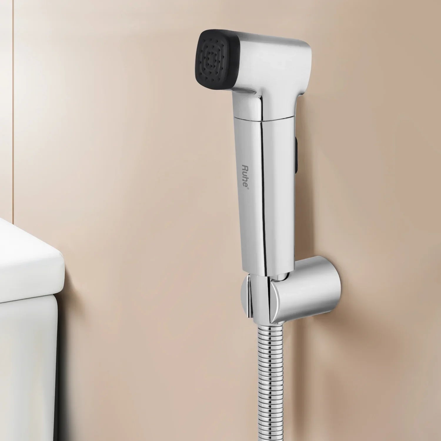 PACKAGE CONTENTS: An all-inclusive set that includes, 1 health faucet gun, 1 m 304-grade stainless steel flexible hose pipe, ABS holder, 2 screws and 2 PVC dowels.