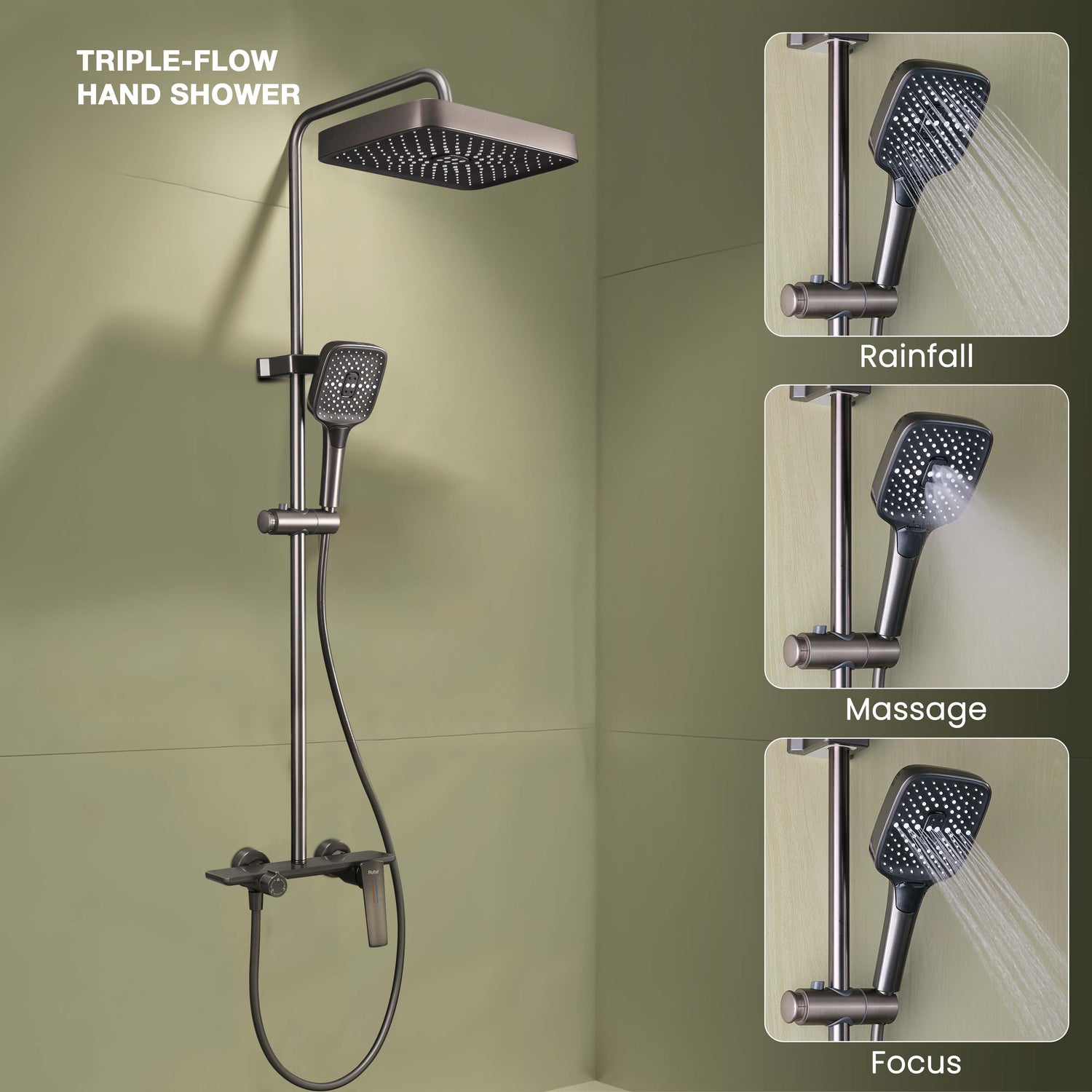 Rain Smart Shower Panel Set - Gunmetal is backordered and will ship as soon as it is back in stock.