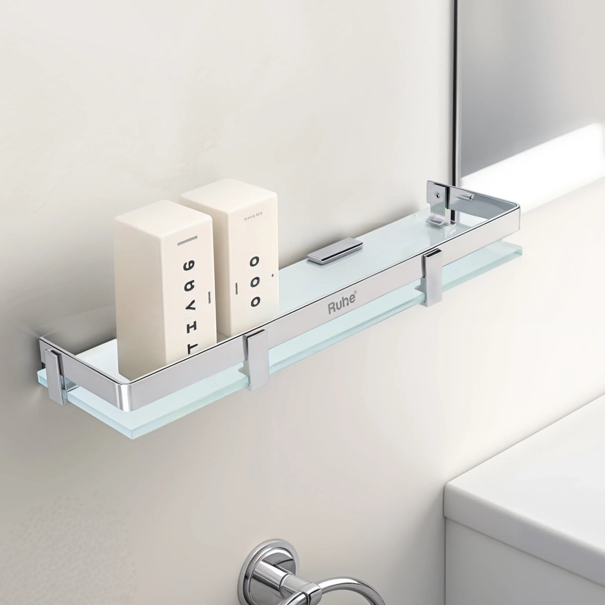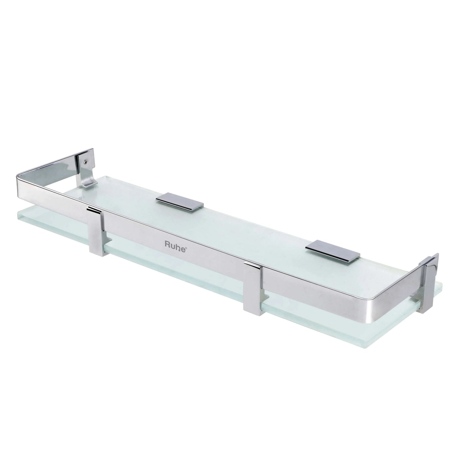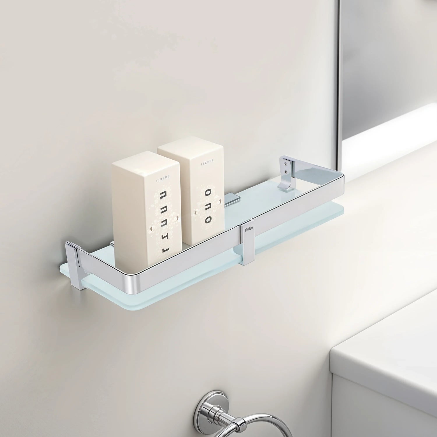 FINISH: A sleek chrome finish on high-grade brass pairs elegantly with the frosted glass shelf, bringing a modern, minimalist aesthetic to any bathroom.
