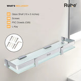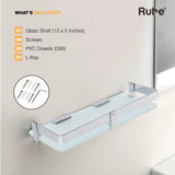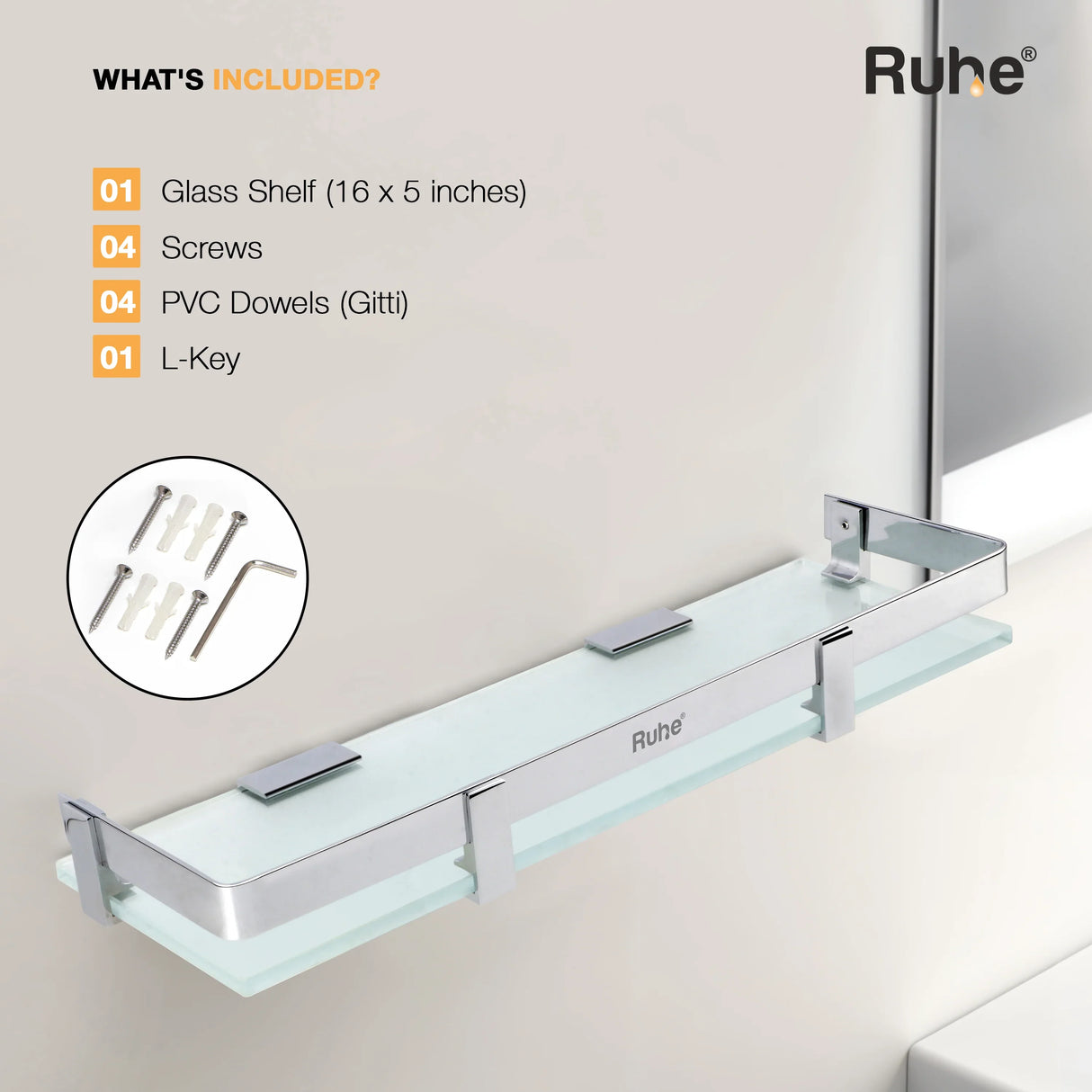 PACKAGE CONTENTS: An all-inclusive set that includes 1 Glass Shelf, 4 PVC Dowels (Gitti), 4 Screws and 1 L-Key.