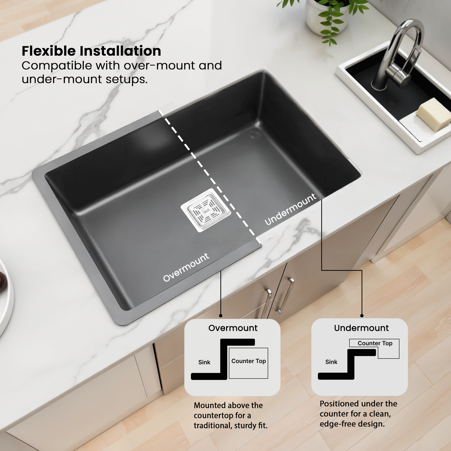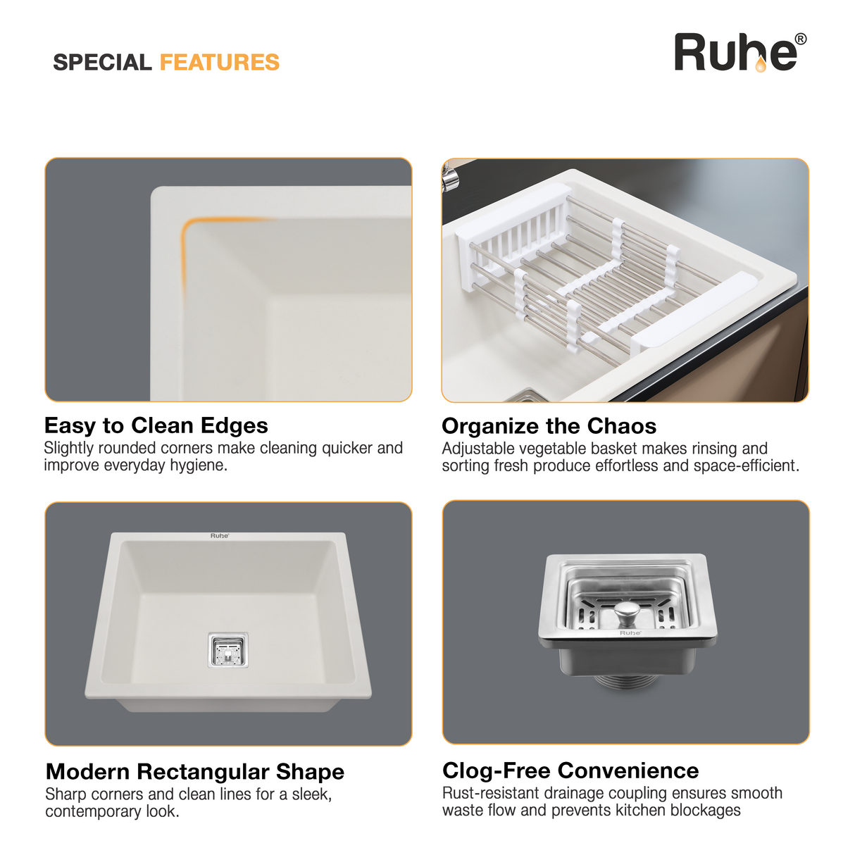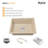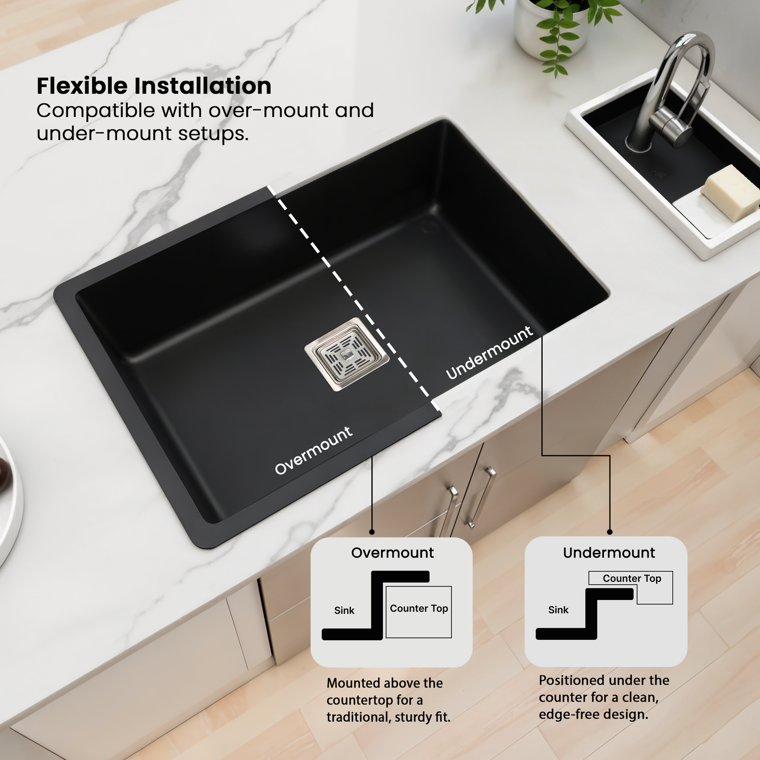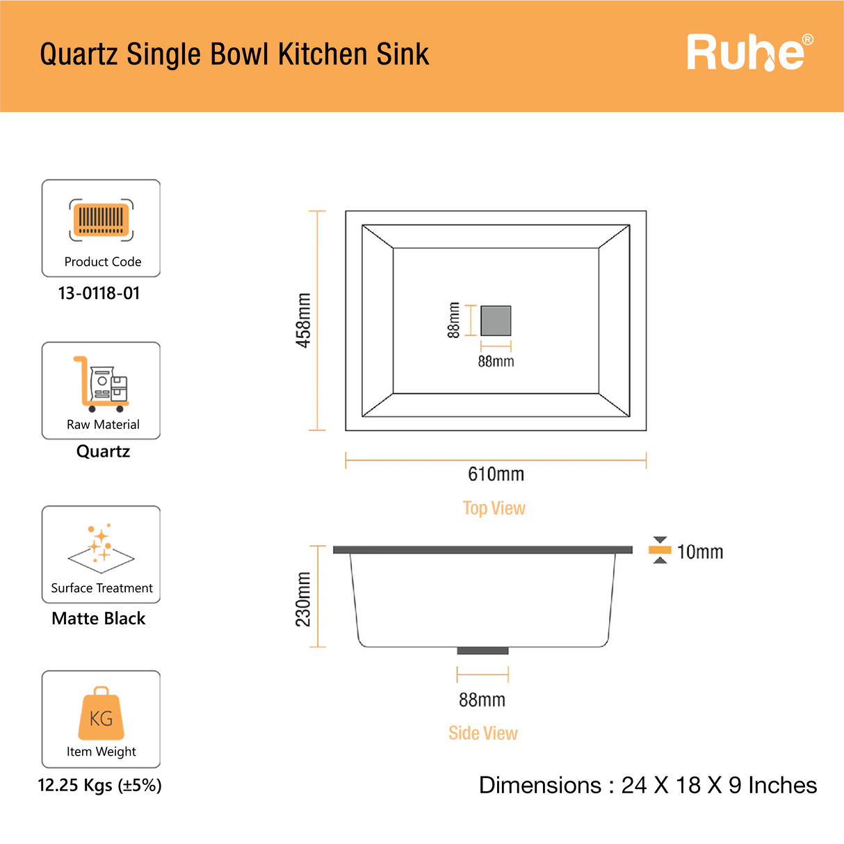 Quartz Single Bowl Kitchen Sink (24 x 18 x 9 Inches)