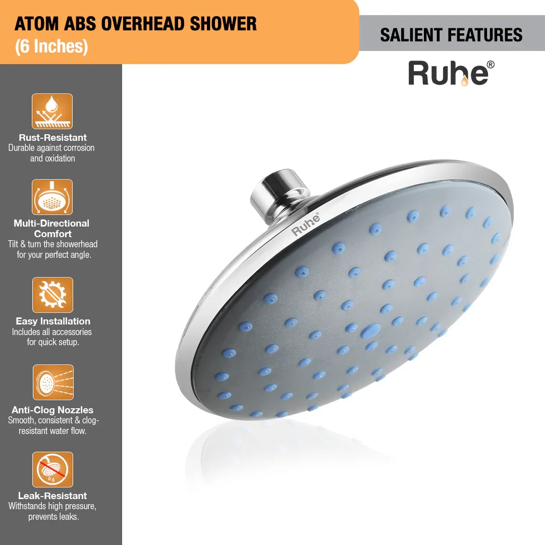 Ruhe Atom Overhead Rain Shower for Bathroom is a powerful, sleek and stylish shower head that promises the ultimate bathing experience. (Without shower arm & flange)