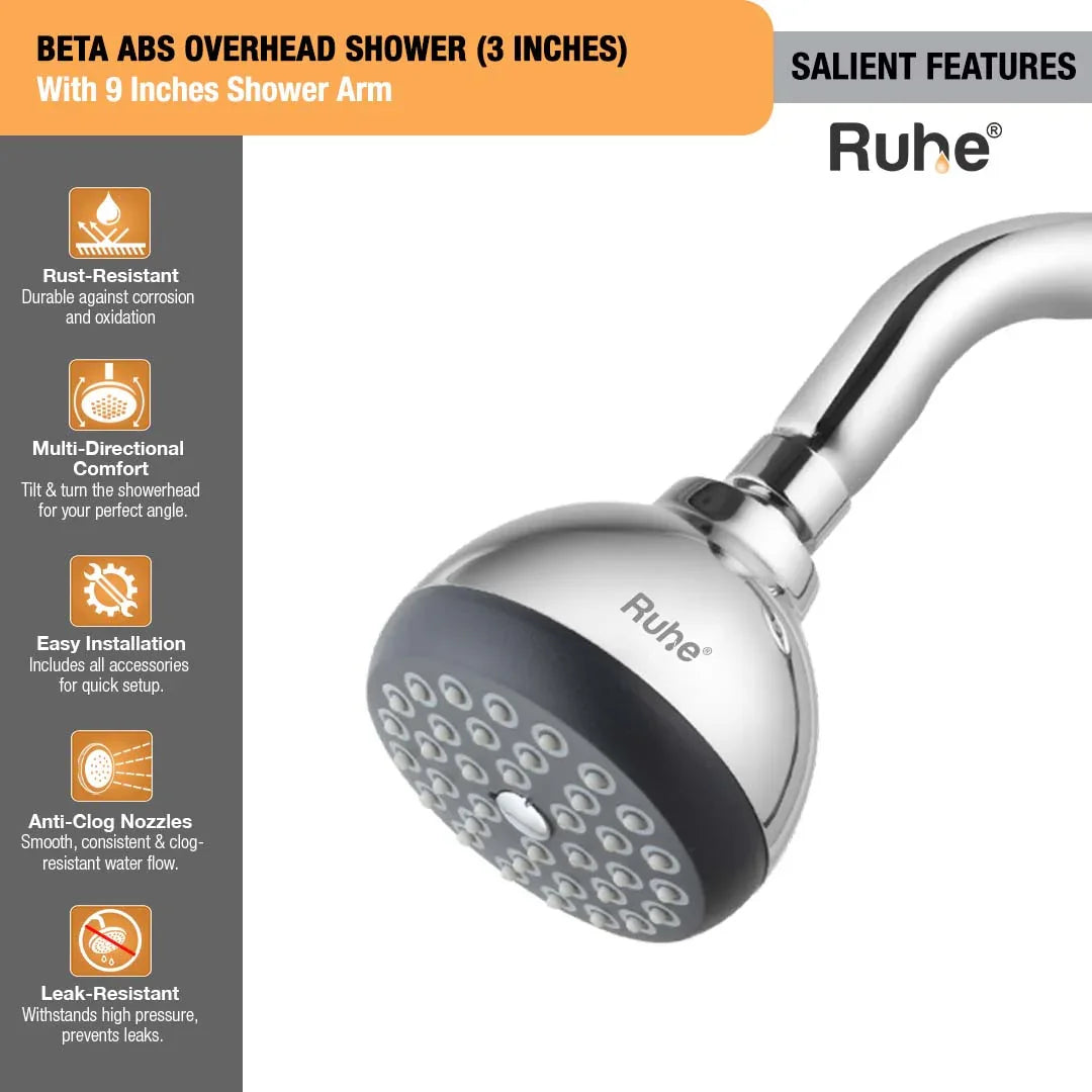 Beta ABS Overhead Shower (3 Inches) With 9 Inches Shower Arm