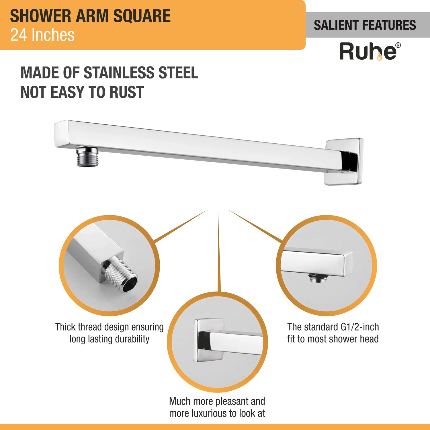 Shower Arm Body is built in Premium Stainless Steel with a Brass Thread.