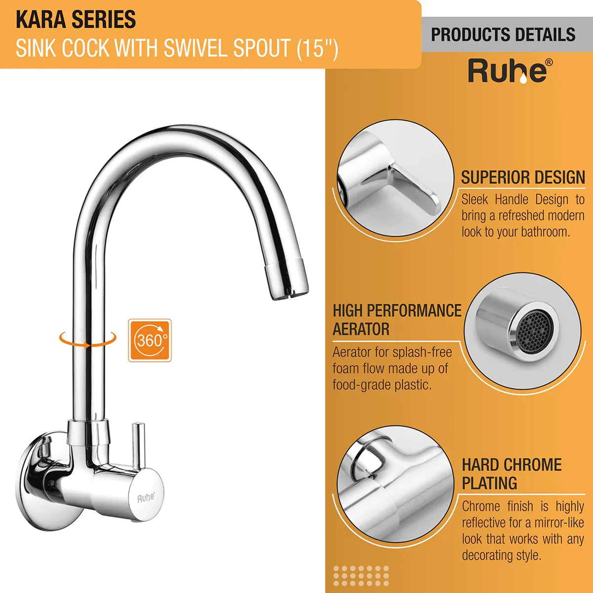 Kara Wall Mount Kitchen Sink Tap with Swivel Spout