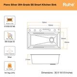 Piano Smart Kitchen Sink (30 x 18 x 9 Inches)