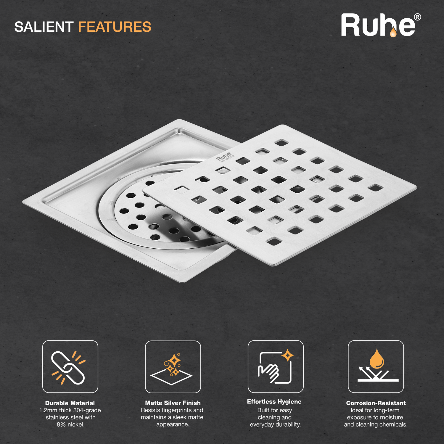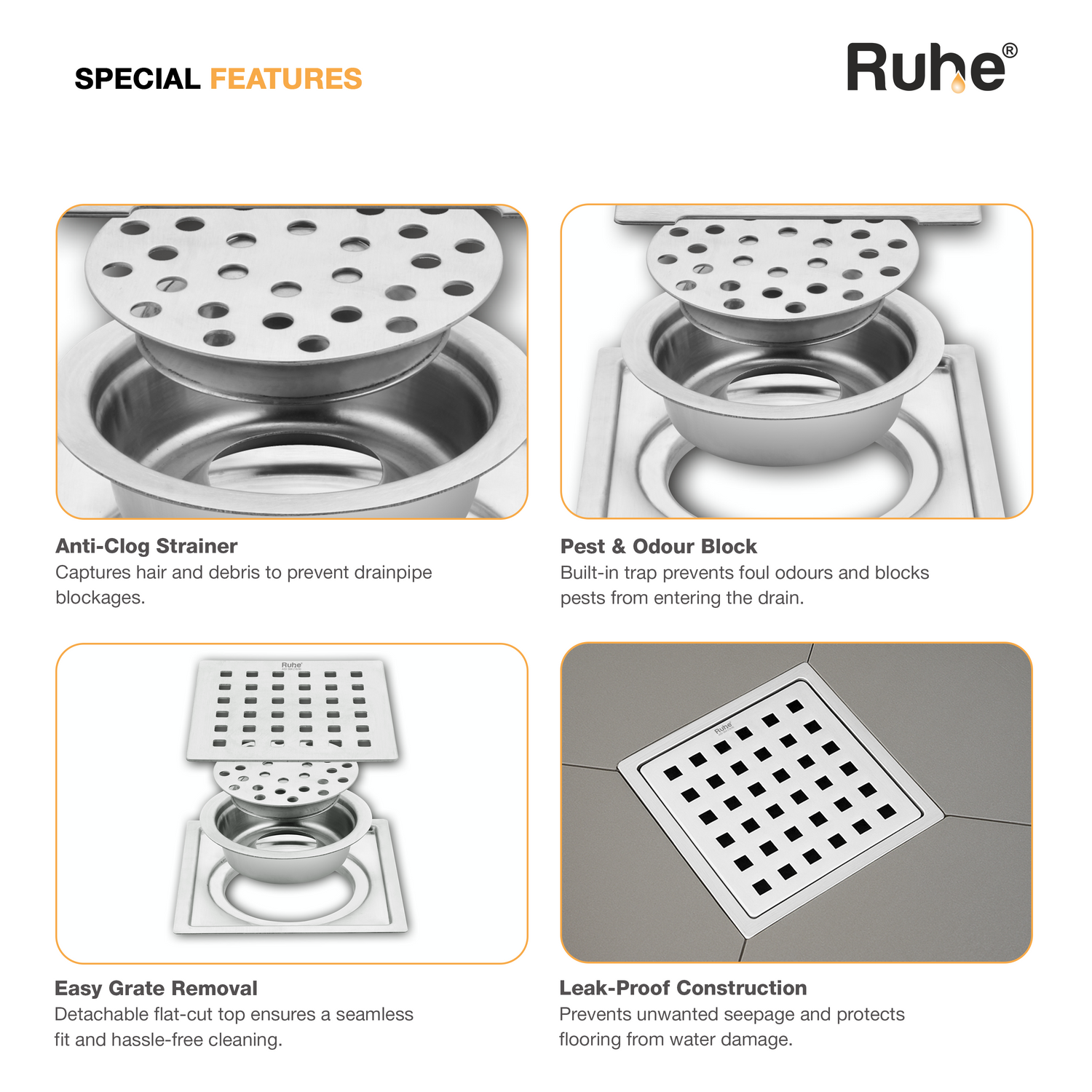 Pearl Square Flat Cut Floor Drain