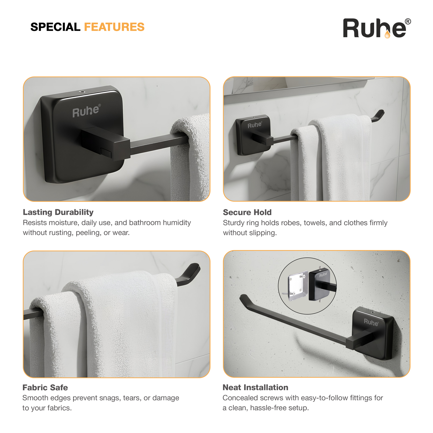 • Premium matte black PVD coating ensures superior durability and a luxe finish