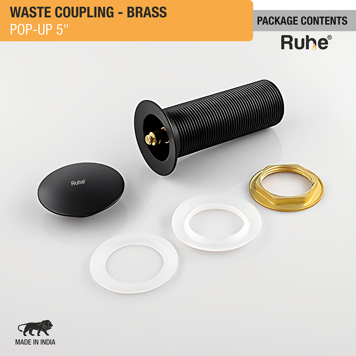 Ruhe Pop-up Waste Coupling is a perfect drainer for modern countertop and wall mount wash basins that gives a sophisticated look, allows quick drainage and comes with 1 year warranty.