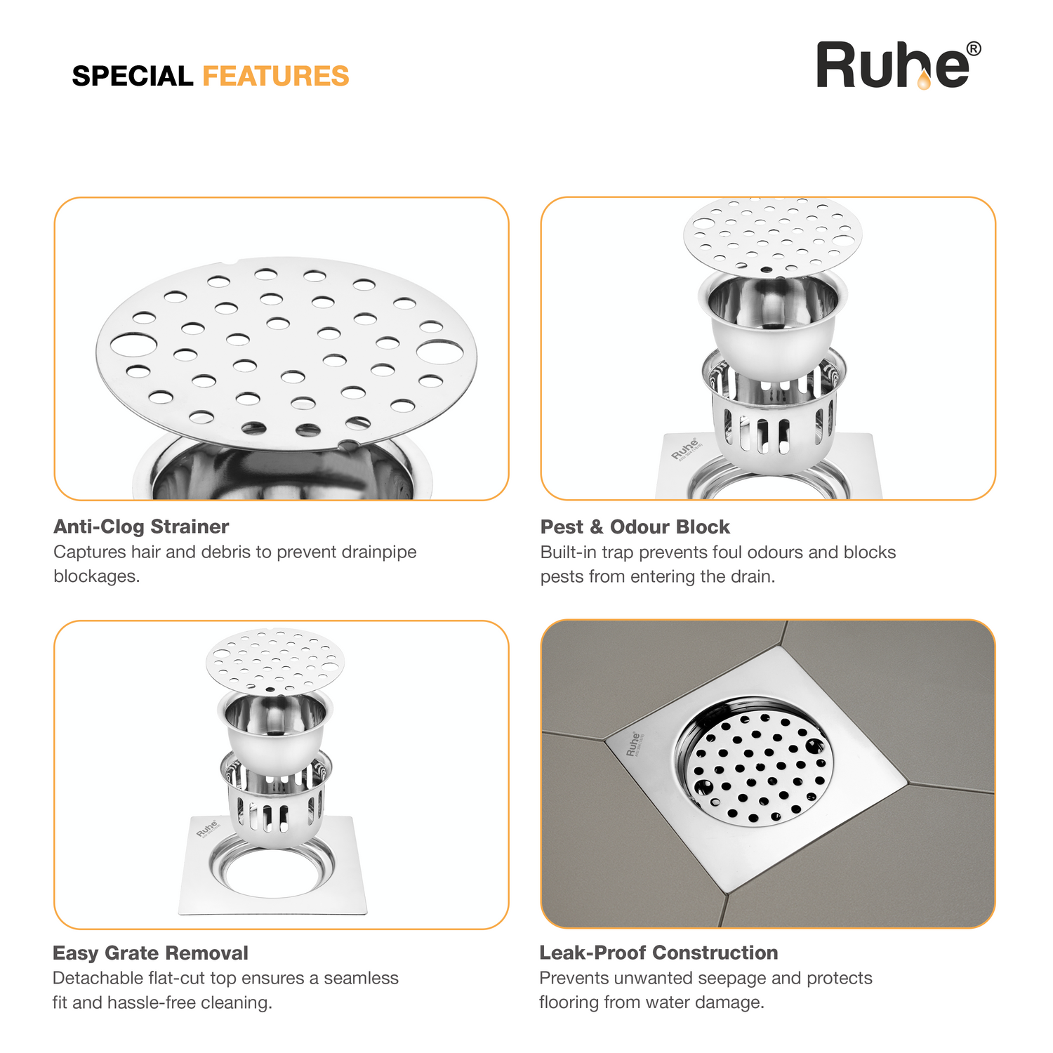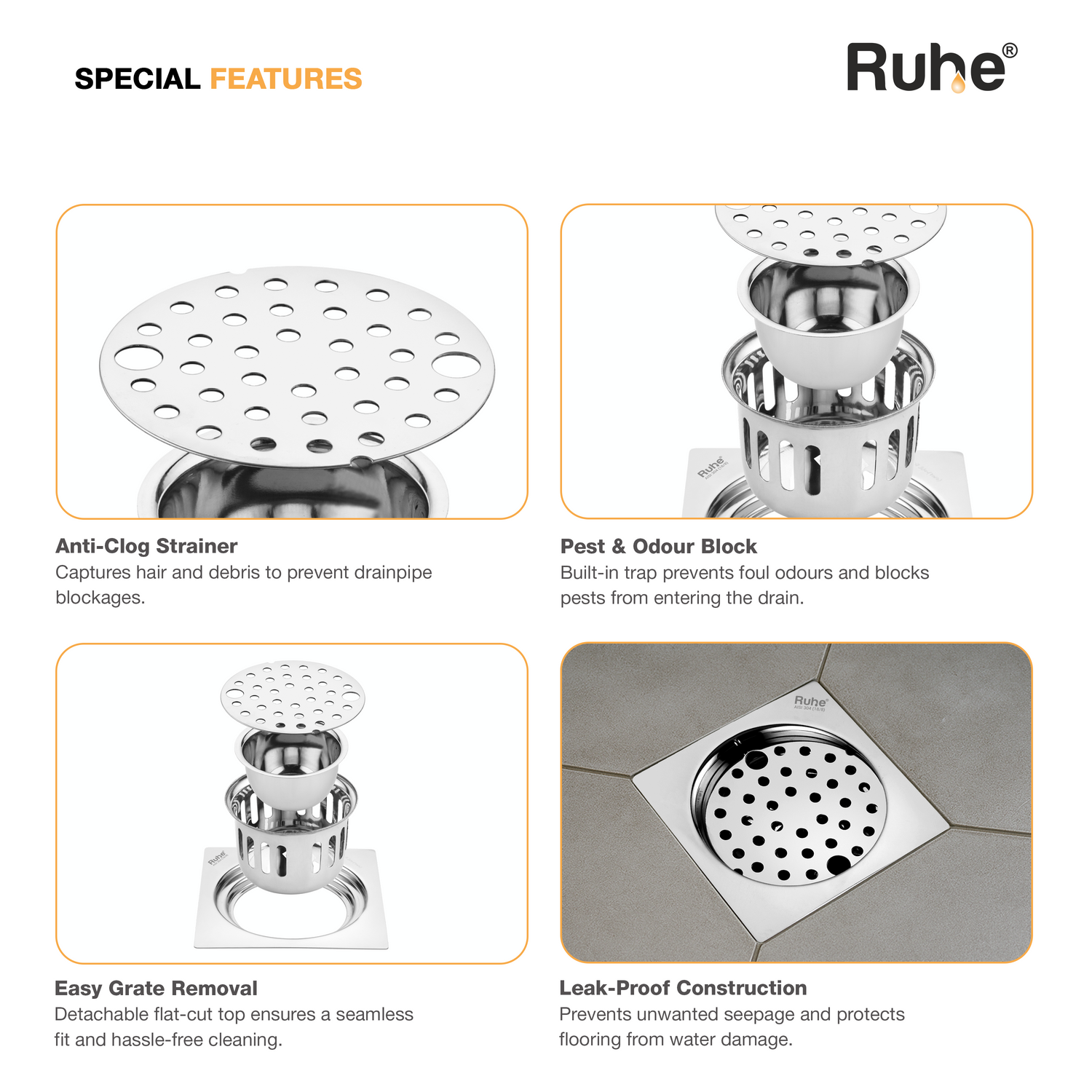 Air Flat Cut Floor Drain with Lock & Cockroach Trap