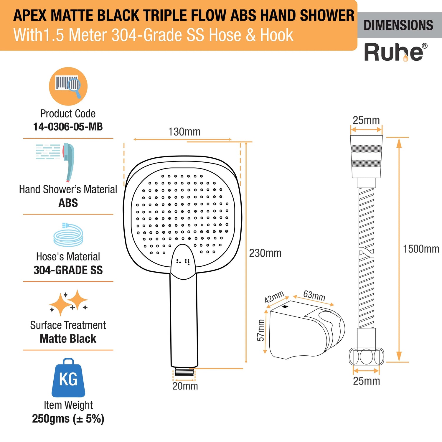 Apex Chrome Triple Flow ABS Hand Shower with 1.5 Meter 304-grade SS Hose & Hook