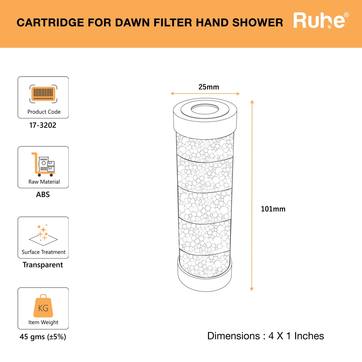 PACKAGE CONTENTS: An all-inclusive set that includes 1 cartridge for Dawn Hexa-Flow ABS Filter Hand Shower.