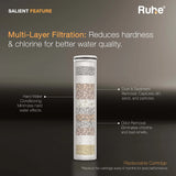 MULTI-LAYER FILTRATION: Advanced multi-layered filtration system designed to improve water quality by reducing impurities, hardness, and chlorine.