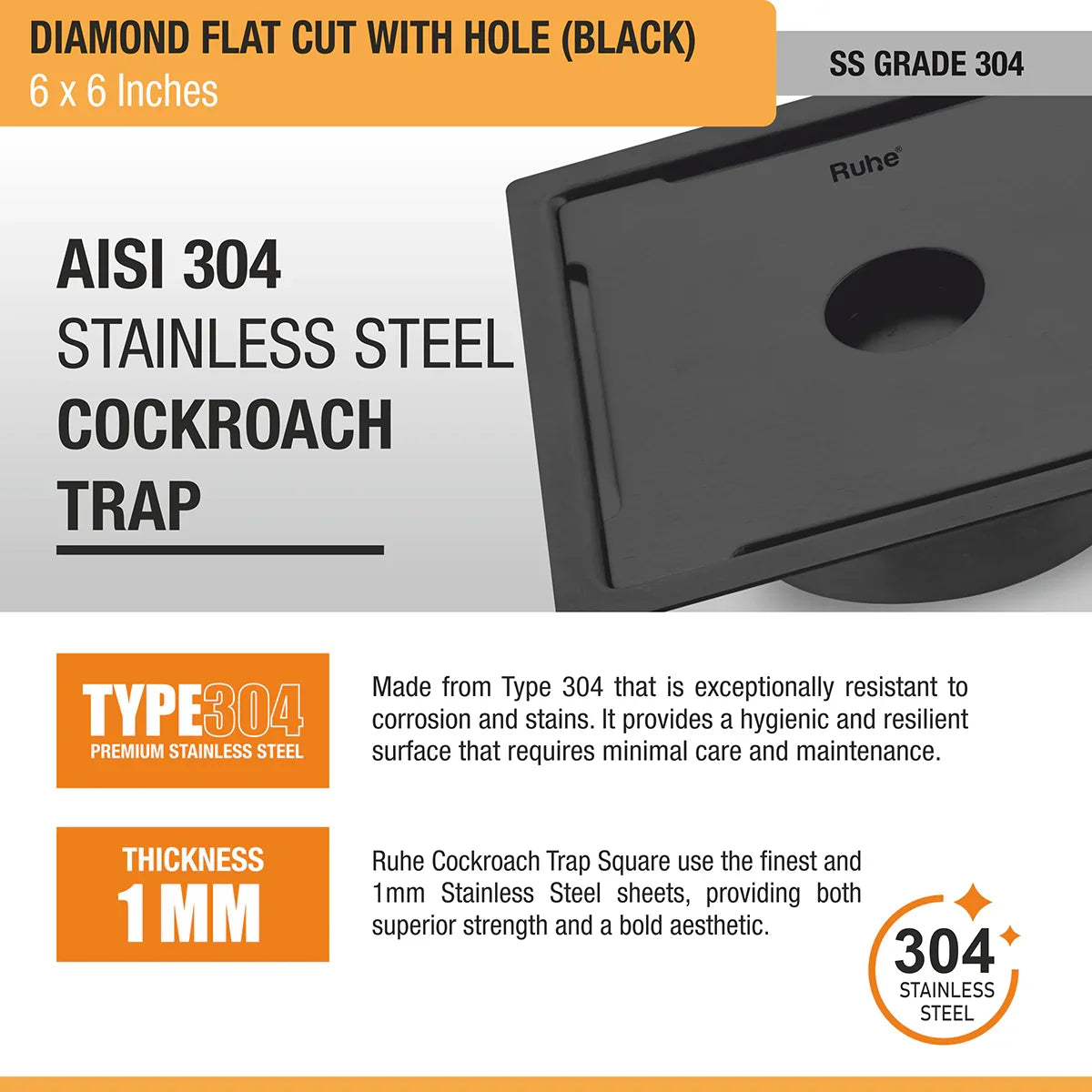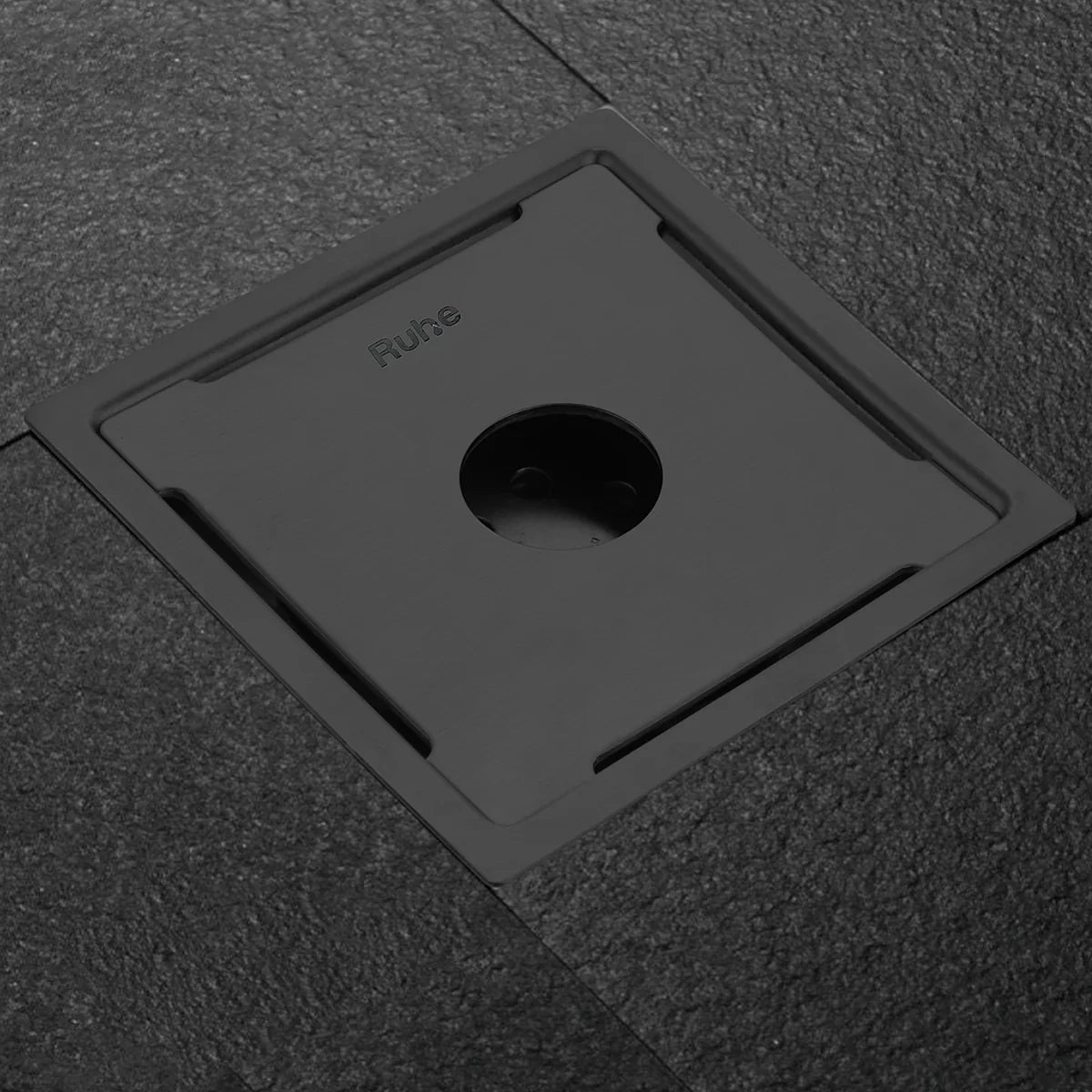 Diamond Square Flat Cut Floor Drain in Black PVD Coating (6 x 6 Inc...