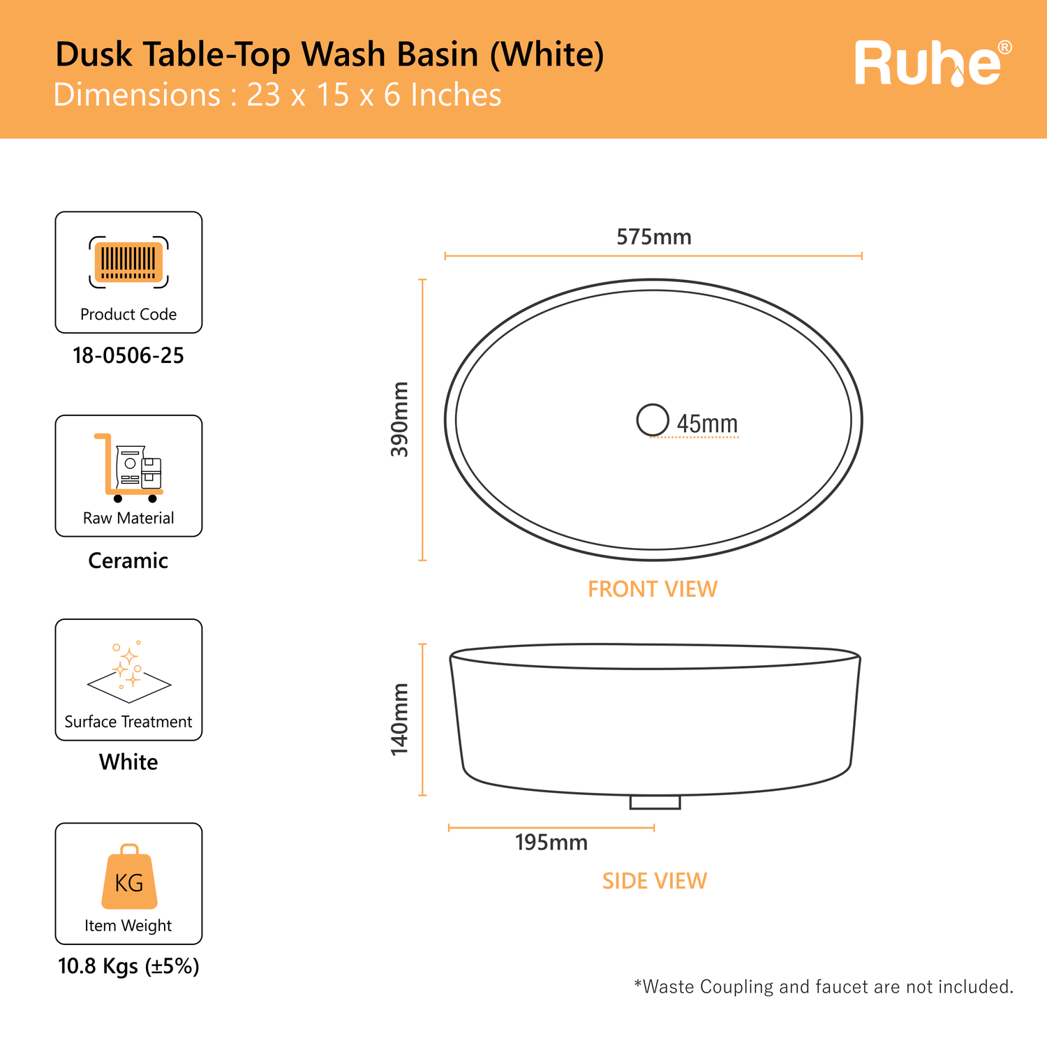 PACKAGE CONTENTS: The package includes 1 wash basin. [Please note that the faucet and waste coupling are not included.]