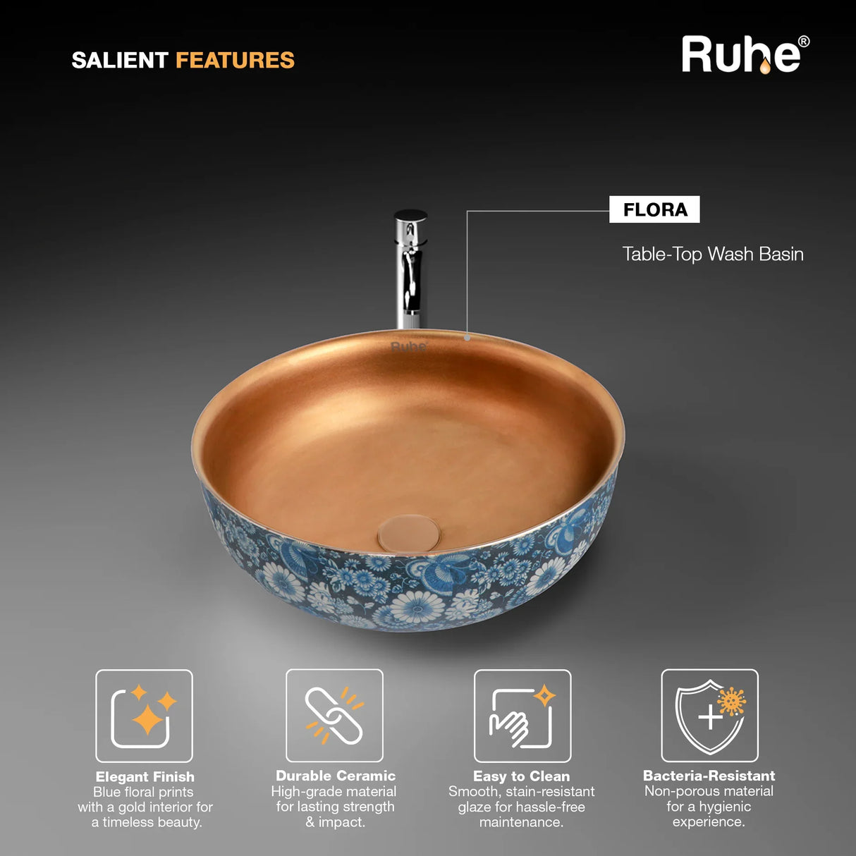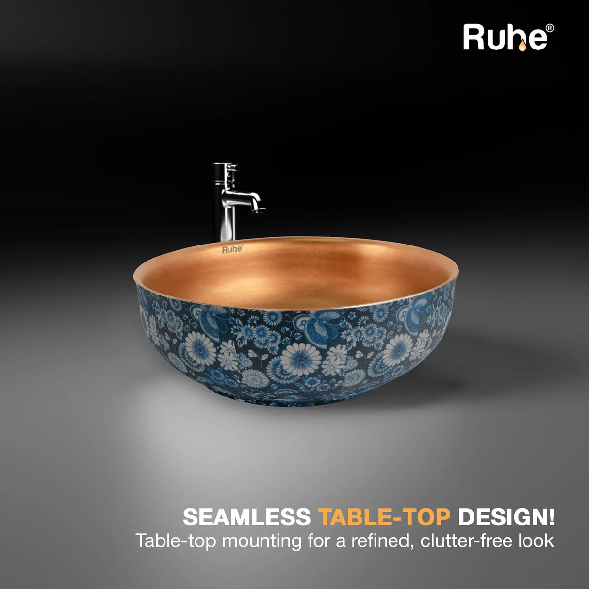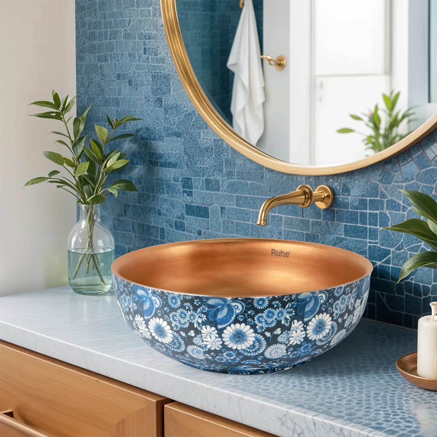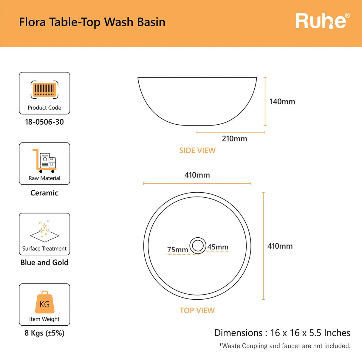 Flora Table Top Wash Basin - Blue and Gold is backordered and will ship as soon as it is back in stock.