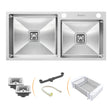Handmade Double Bowl with Tap Hole Kitchen Sink (37 x 18 x 10 Inches)