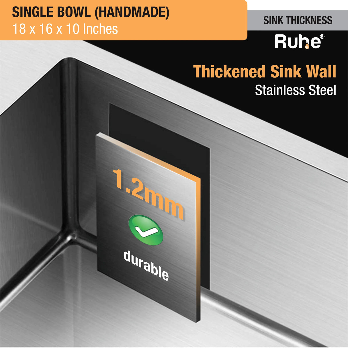 Handmade Single Bowl Kitchen Sink (18 x 16 x 10 Inches)