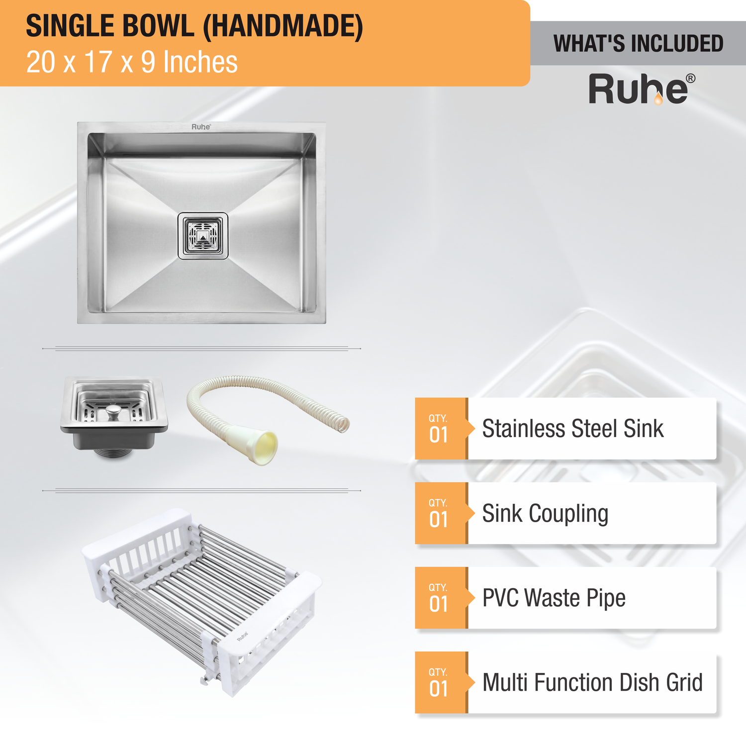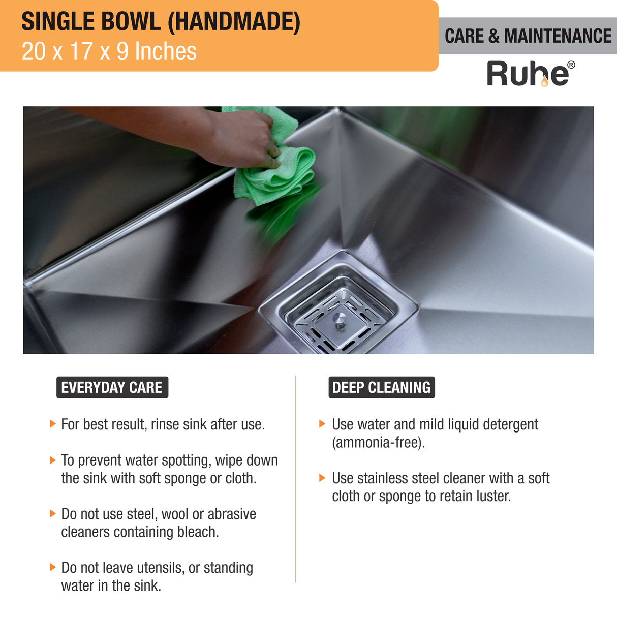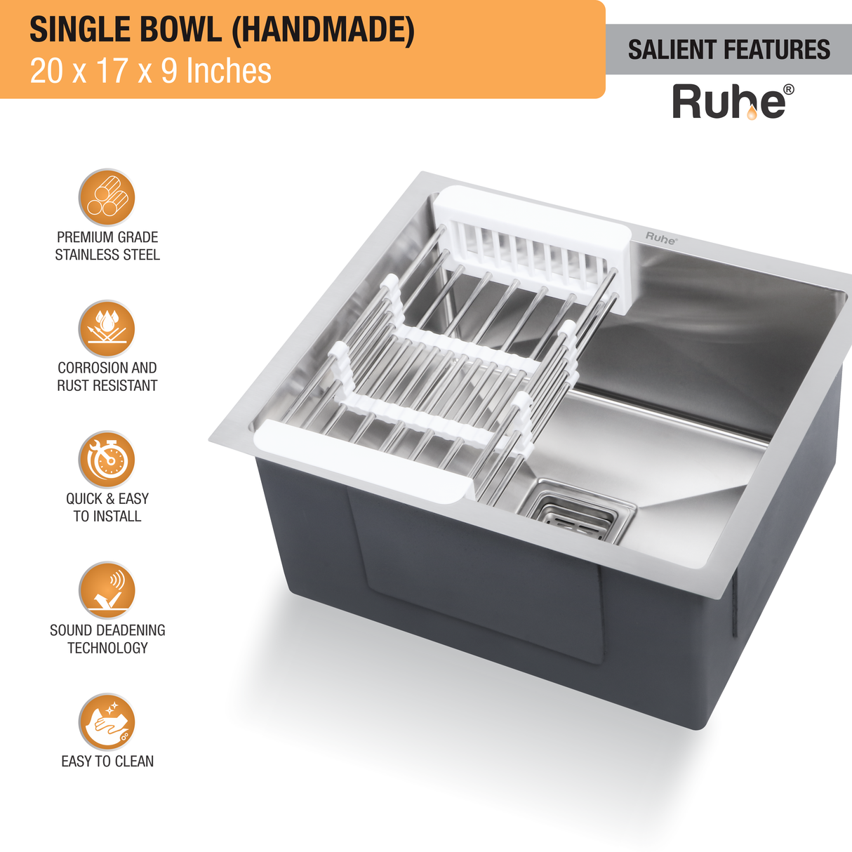 Handmade Single Bowl Kitchen Sink (20 x 17 x 9 Inches)